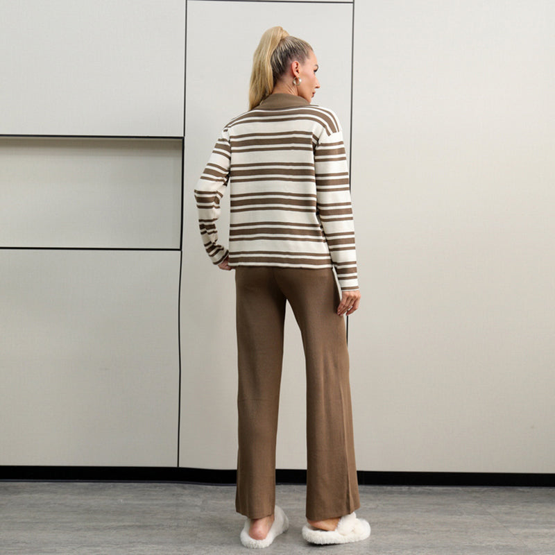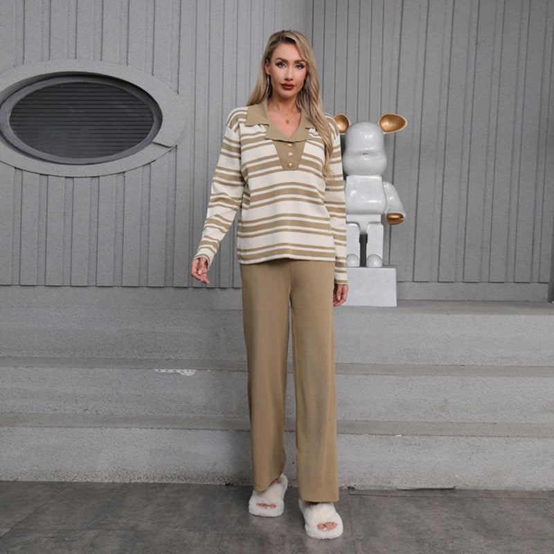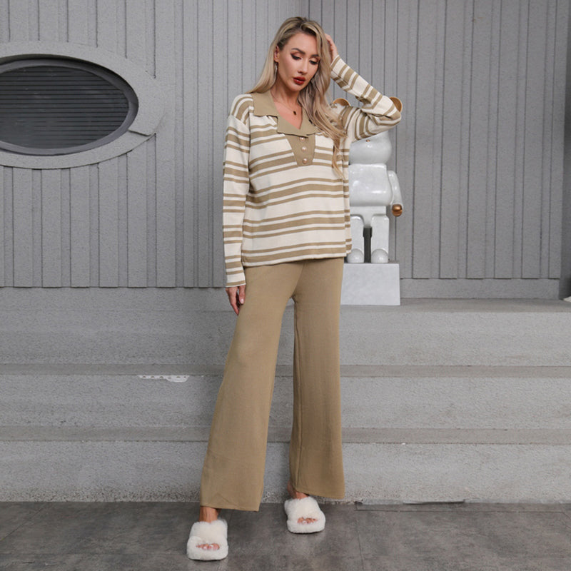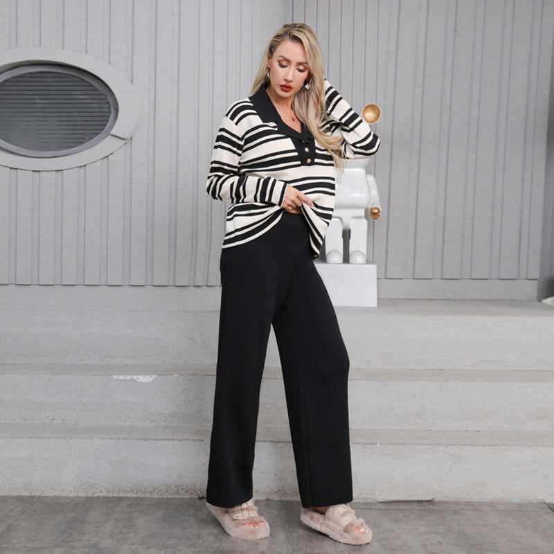 Our solid trackset featuring wide legged pants and long sleeves, geometric design on top with halter jumper is for sure a show stopper. Tracksuits are all-year round-the-clock best sellers. The ribbed pattern adds a touch to the aesthetics of the overall look.