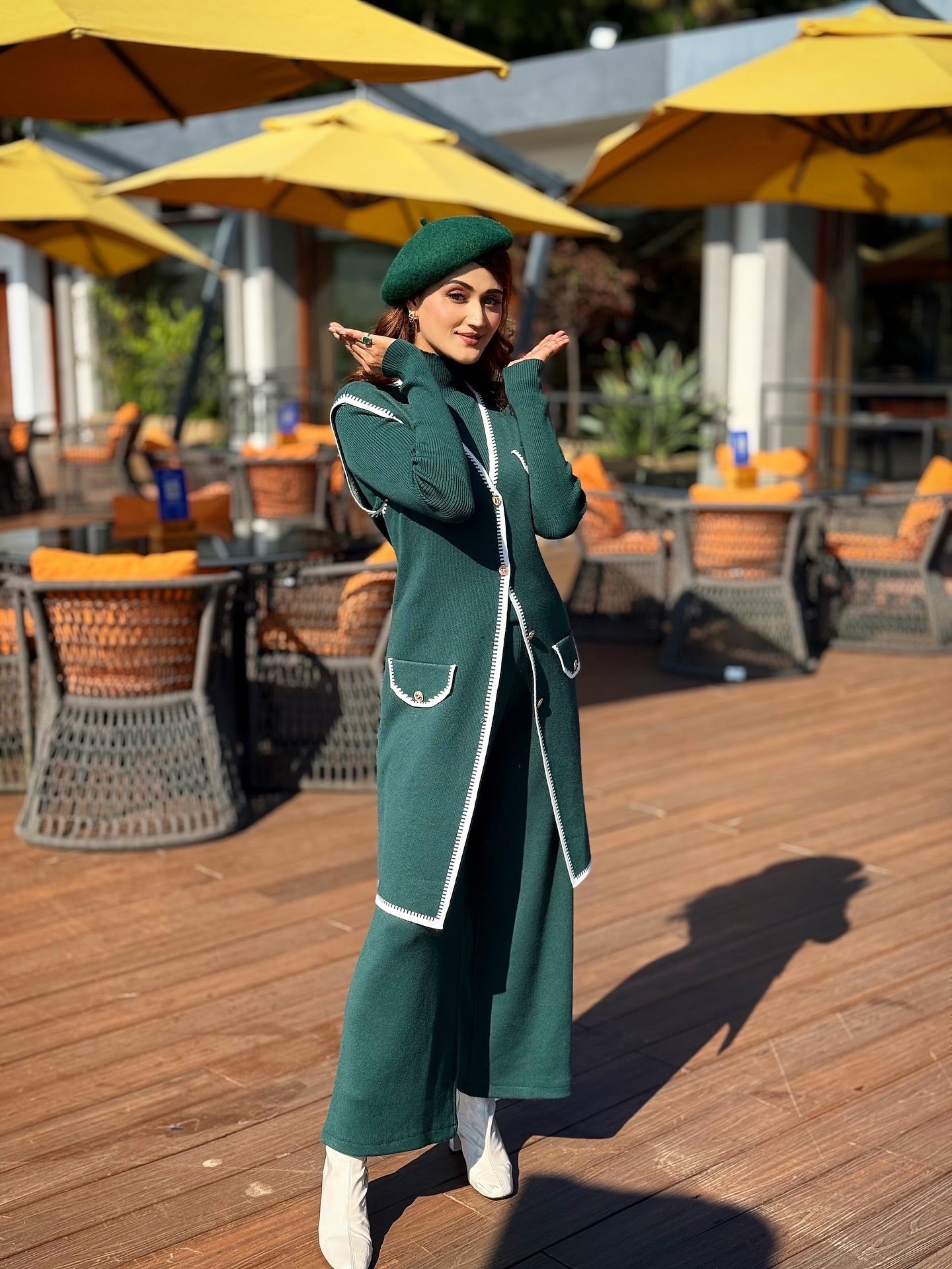 Our solid track set featuring wide-legged pants and cardigan featuring embroidered modern floral pattern is for sure a show stopper. Tracksuits are all-year round-the-clock best sellers. The ribbed pattern adds a touch to the aesthetics of the overall look.