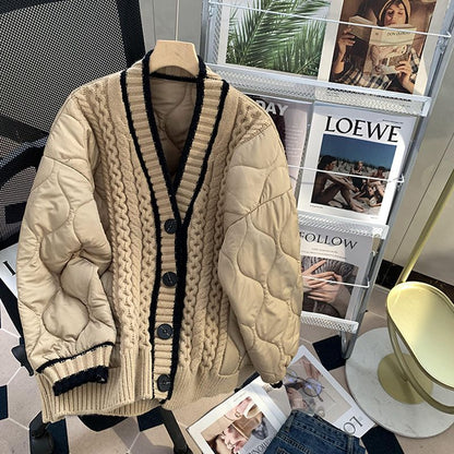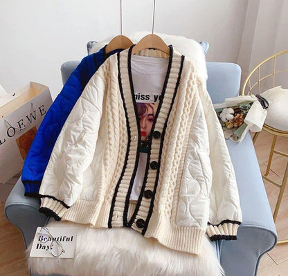 Our padded jackets featuring quirky knitted sweater detailing is a must-have winter wardrobe essential.From a day occasion to night get together, Padded jackets are the perfect fit. The knitted detailing just adds a touch to the aesthetics of the overall look.
