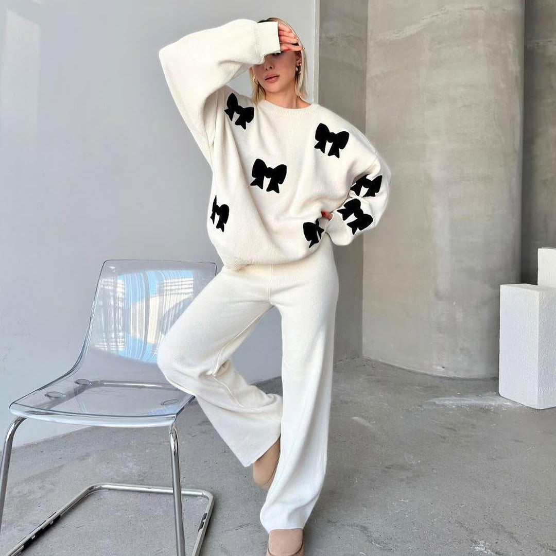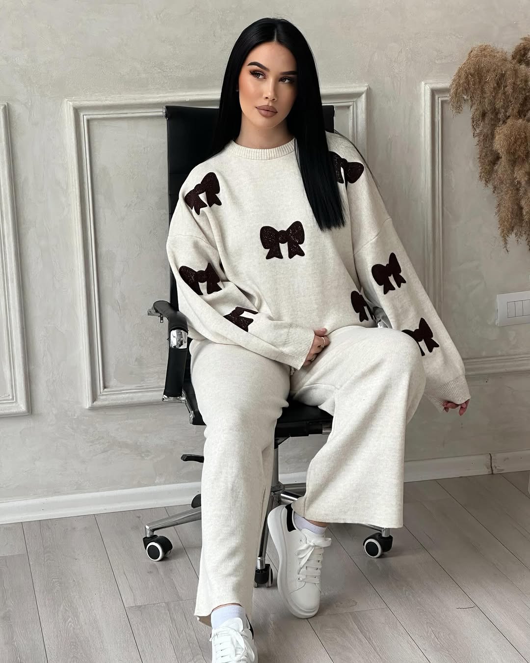 Our solid trackset featuring wide legged pants and long sleeves featuring ribbed pattern with 3D bow detailing is for sure a show stopper. Tracksuits are all-year round-the-clock best sellers. The ribbed pattern adds a touch to the aesthetics of the overall look.