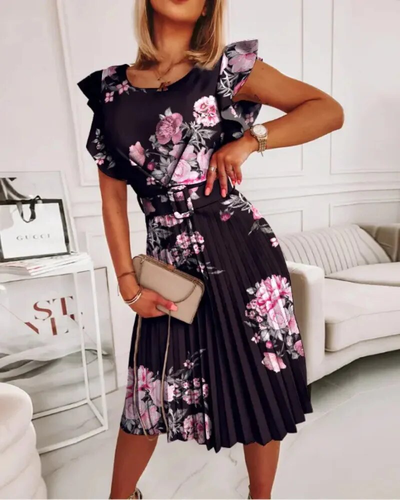 Our printed Midi dress in cotton featuring ruffle sleeves with a belt is for sure a show stopper. Midi Dresses are all year round clock best sellers. From a day occasion, tonight's get-together, Midi dresses featuring ruffle sleeves just add a touch to the overall look's aesthetics.
