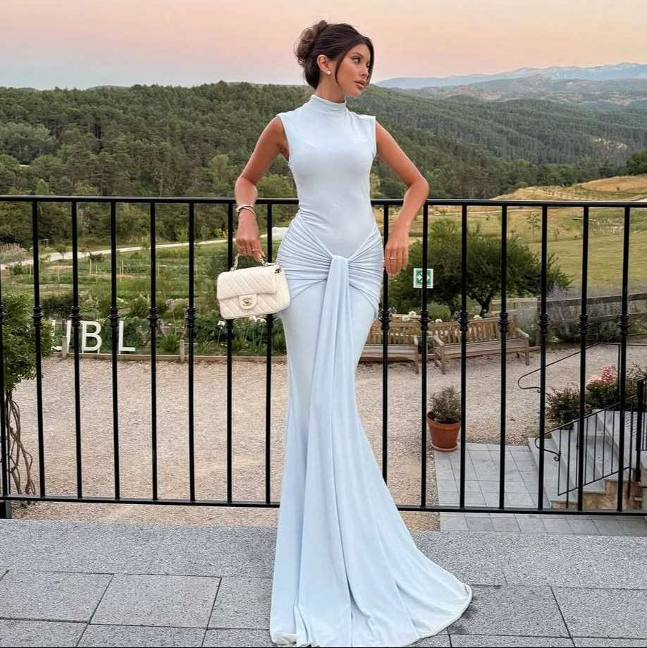 Our Maxi Dress featuring a high neck detailing with gathered waist including a draped detailing is for sure a show-stopper. Maxi Dresses are all year round clock best sellers. From a day occasion, tonight's get-together the drape detailing and self tie-bow makes it a perfect set for all your vacation fits
