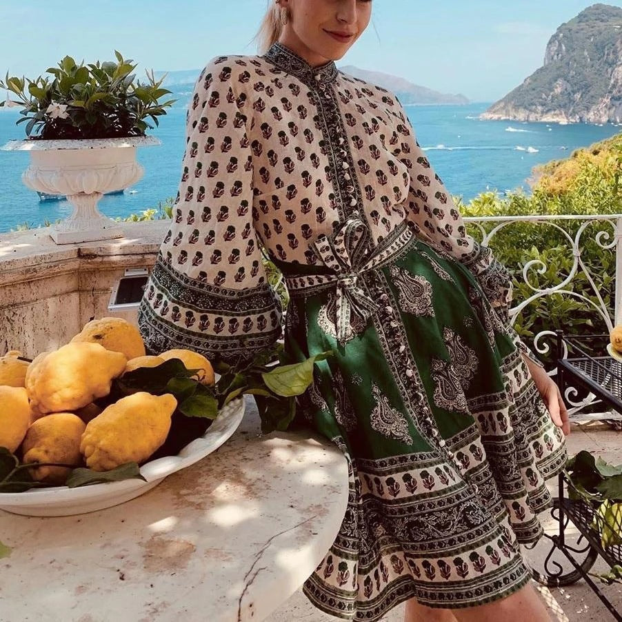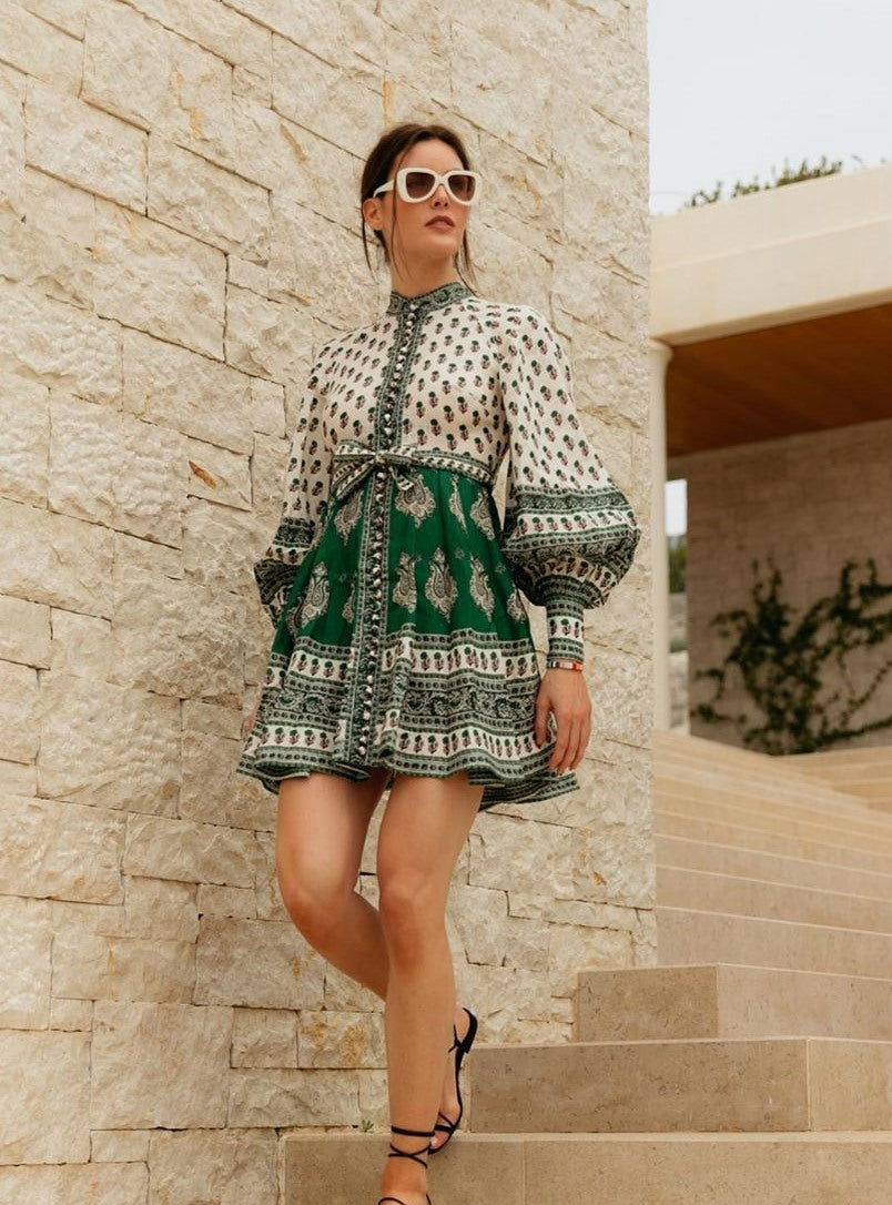Our A-line Midi dress featuring a waist belt and contemporary print is for sure a show-stopper. Midi Dresses are all year round clock best sellers. From a day occasion, tonight's get-together the contemporary detailing makes it a perfect dress for all your vacation fits
