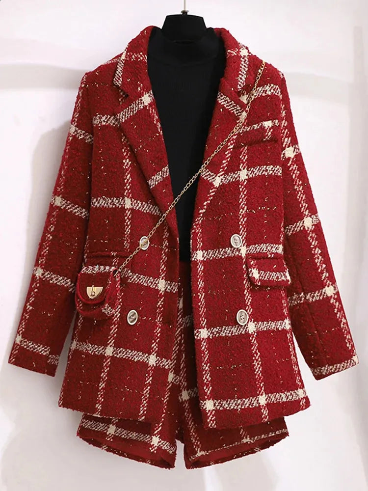 Our plaid coordinated set with high waisted mini skirt and coordinating tweed blazer with lace work and embelished button detailing with coordinated Bag is for sure a show stopper. Co-ord sets are all-year round-the-clock best sellers. From a day occasion to a night get-together, the plaid pattern just adds a touch to the aesthetics of the overall look.