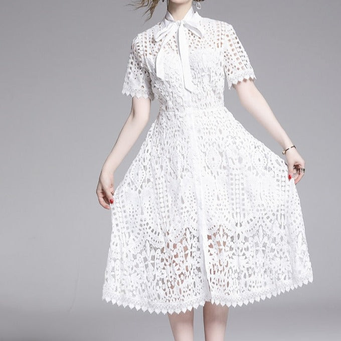 Our Midi Summer dress featuring lace embroidery and with on and off sleeves is for sure a show stopper. Midi Dresses are a must have essentials for summers. The lace embroidery and the sleeve detailing just adds a touch to the aesthetics of the overall look.
