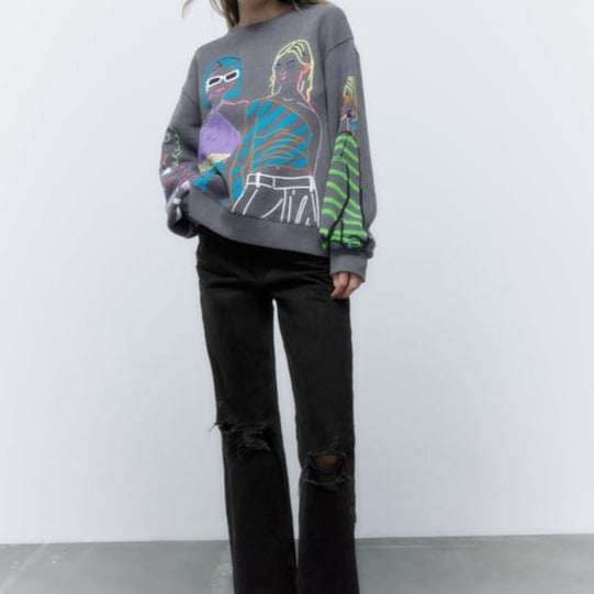 Our printed sweatshirt in an oversized pattern featuring a tye dye look is for sure a show-stopper. Oversized sweatshirts are winter best Sellers. From a day occasion or a night get-together, they are the perfect fit. Our sweatshirts featuring tye dye colors with streetwear patterns just add a touch to the aesthetics of the overall look.
