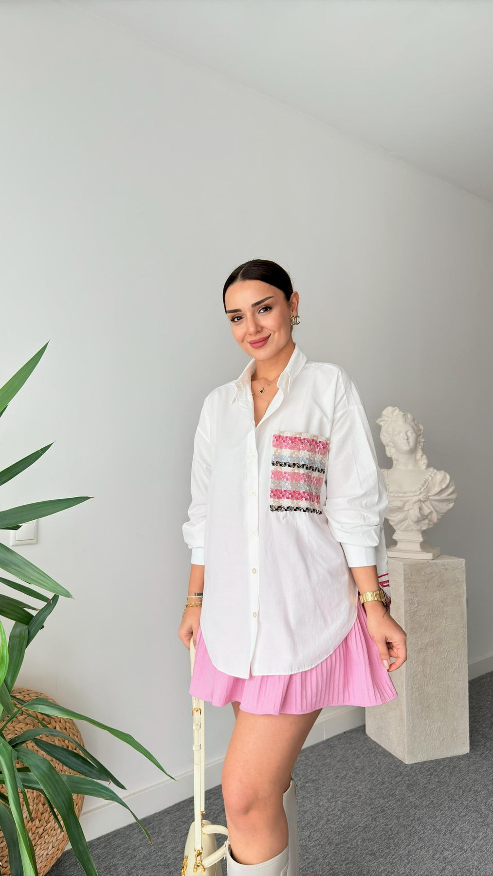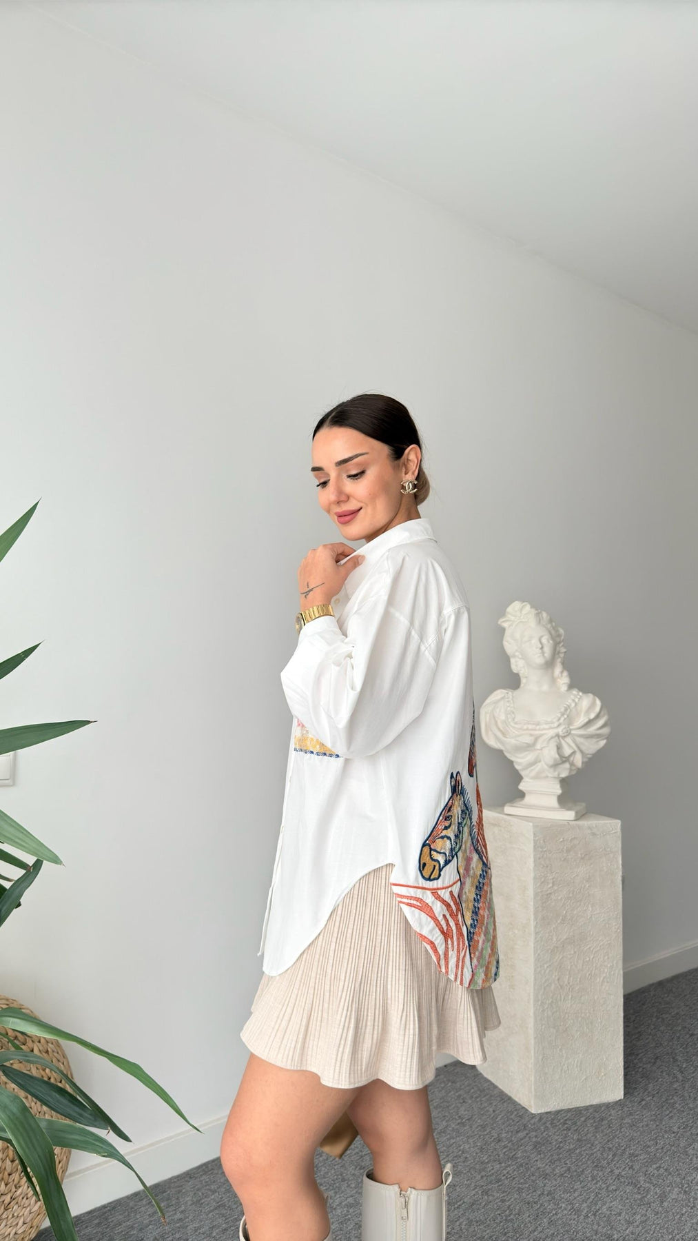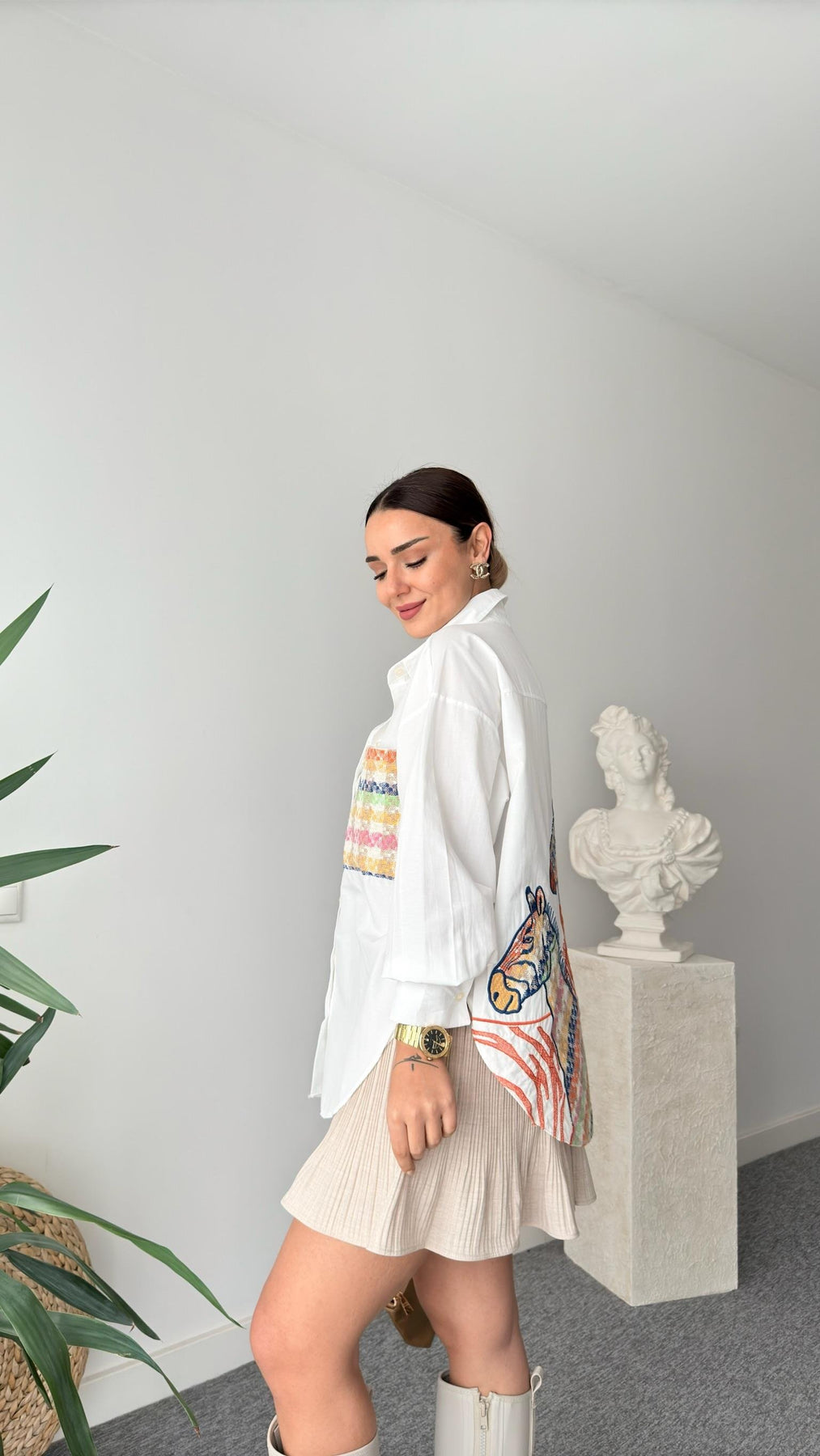 Our luxury shirt featuring all over tweed Embroidery with Full sleeves and Over sized look is for sure a show stopper. Embroidered shirts are all year round clock best sellers. From a day occasion to a get-together, The tweed Embroidery just adds a perfect touch to the aesthetics of the overall look.