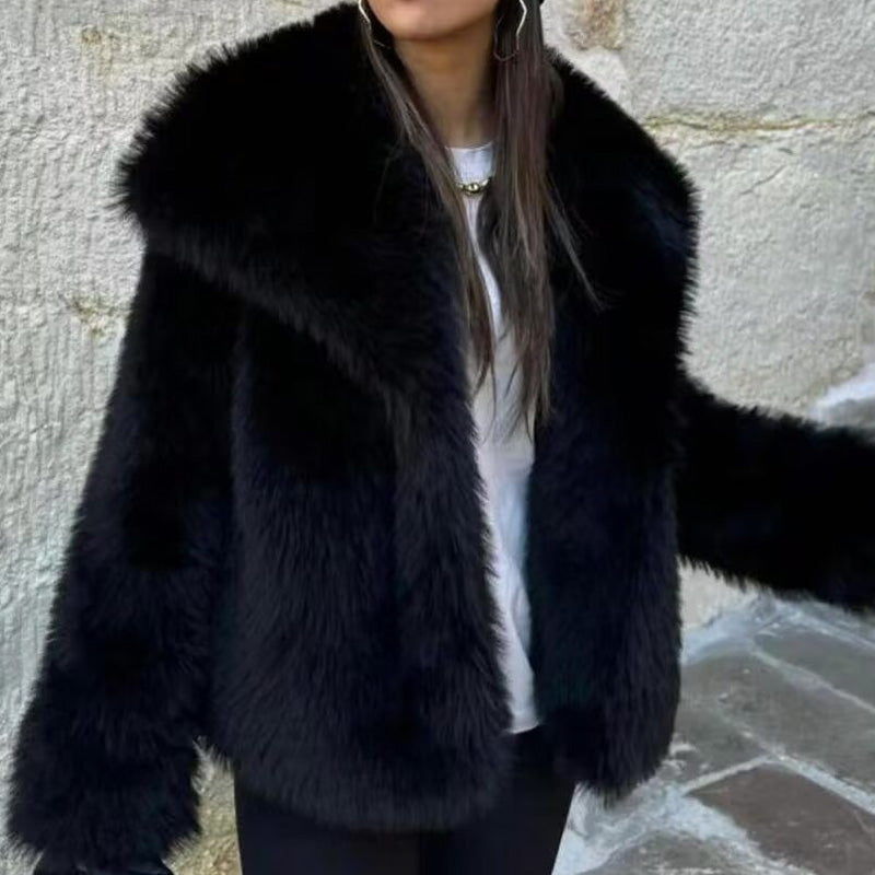 Our faux fur coat with classic lapel is a must-have winter essential.From a day occasion to night get together, fur coats are the perfect fit. The chic detailing just adds a touch to the aesthetics of the overall look.