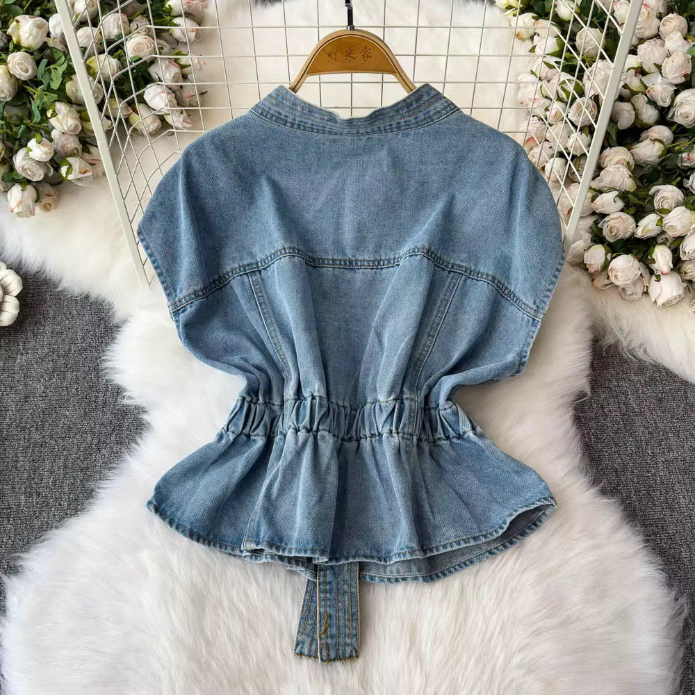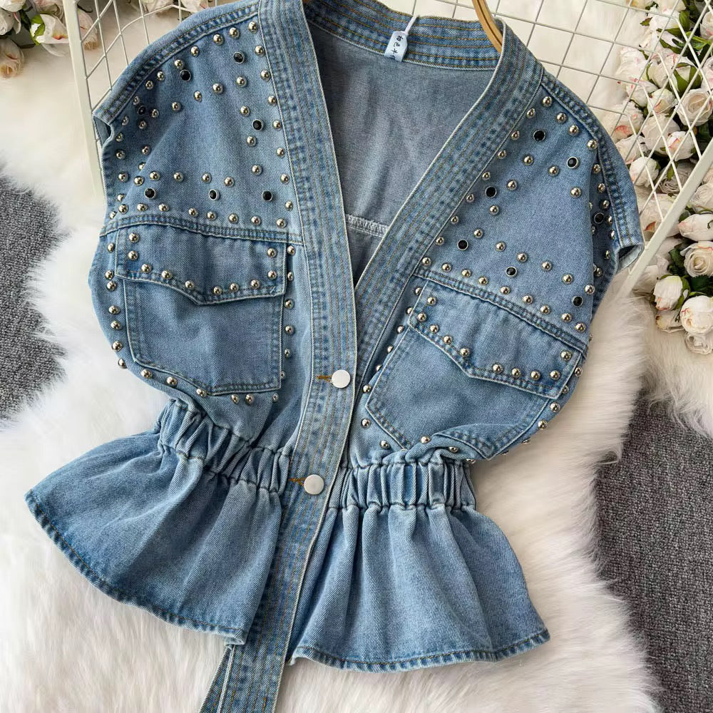 Bringing monotone Denim blouse featuring Studded Stone detailing in summer friendly Denim Fabric . Denim Blouses are the new trendsetters. From a day occasion or a night get-together, they are the perfect fit. Our monotone blouse featuring the studded detailing just adds a touch to the aesthetics of the overall look.