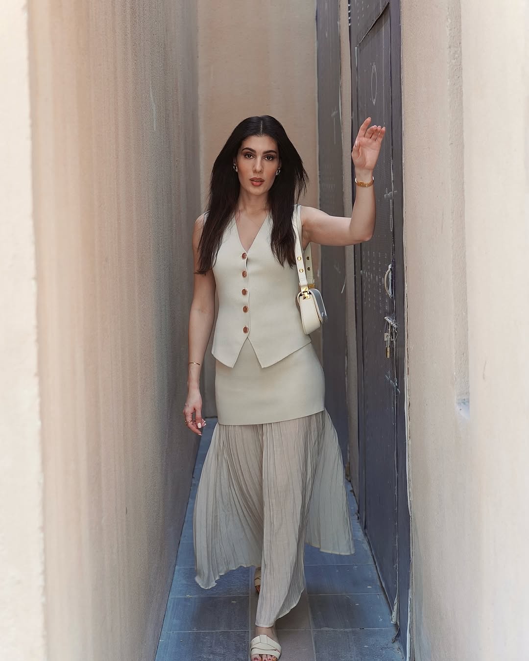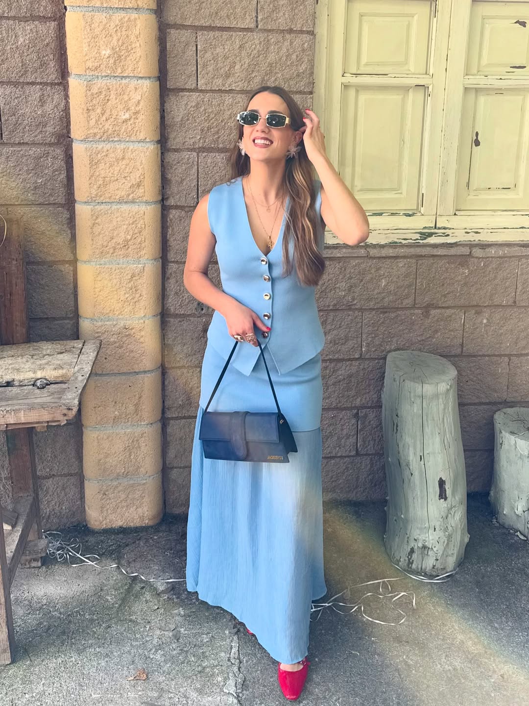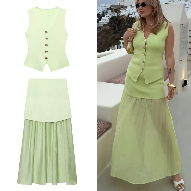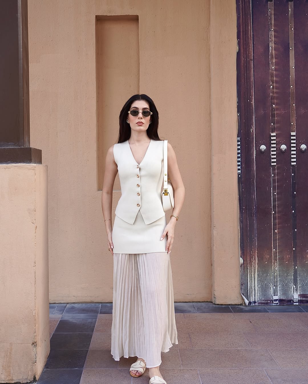 Our coordinated Summer set  featuring a coordinated Blouse with button detailing and a coordinated gored skirt is for sure a show-stopper. Summer sets are all year round clock best sellers. From a day occasion, tonight's get-together the minimalistic design detailing makes it a perfect set for all your vacation fits