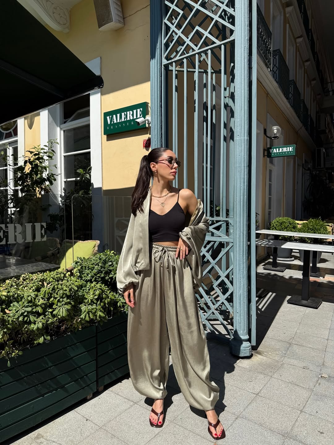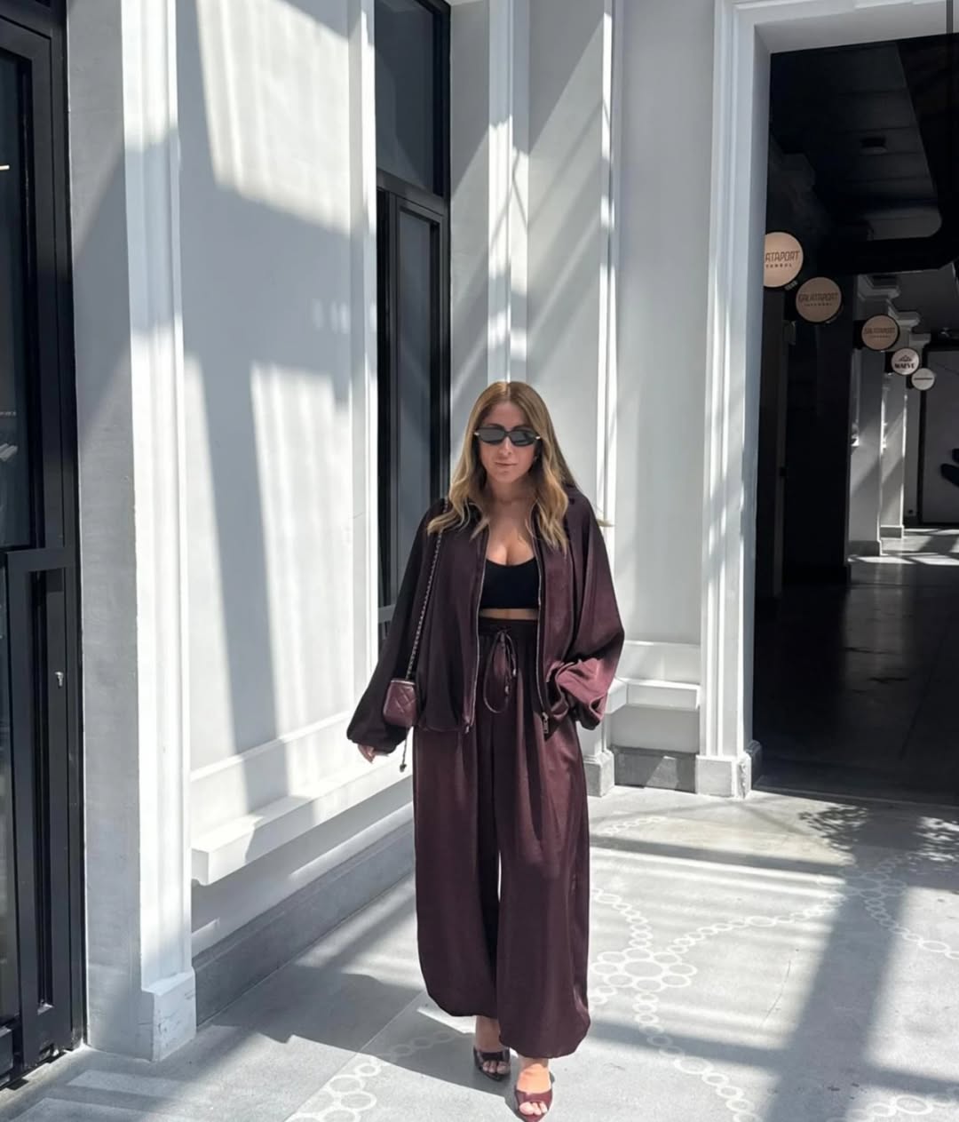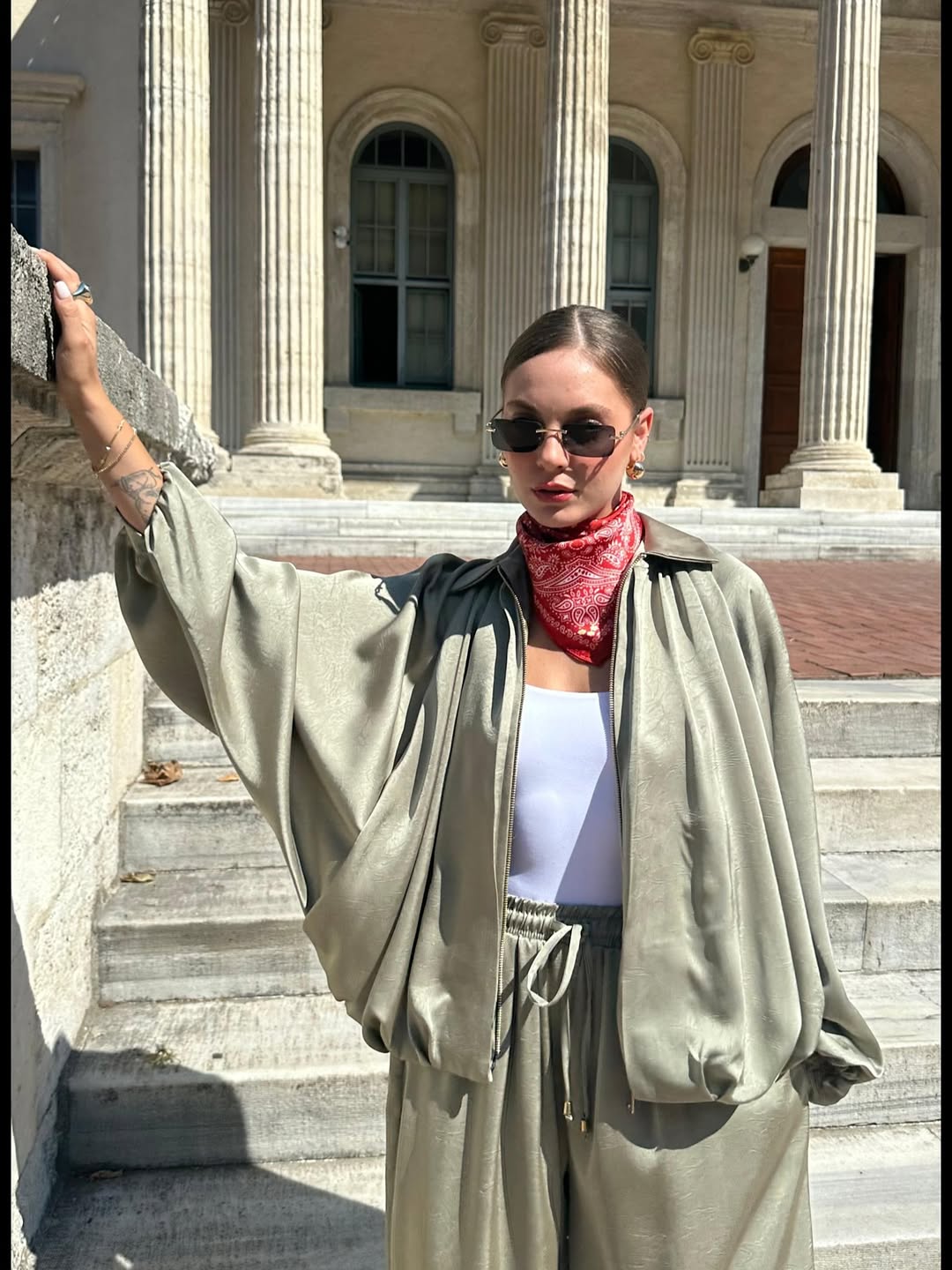 Features: Stretchable, elastic wrist,,wide-legged pants, satin bomber jacket