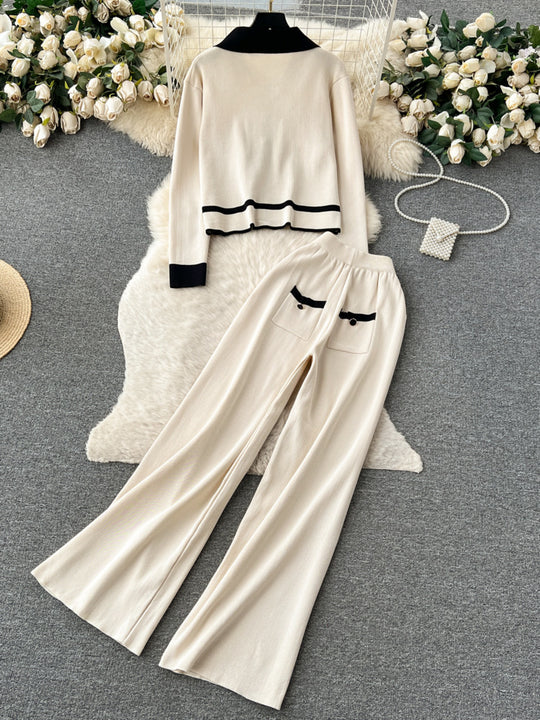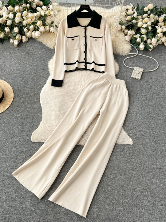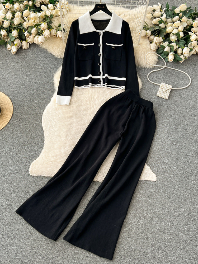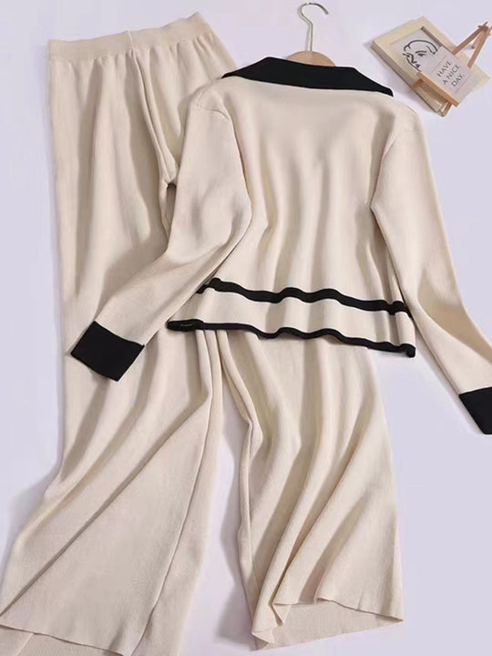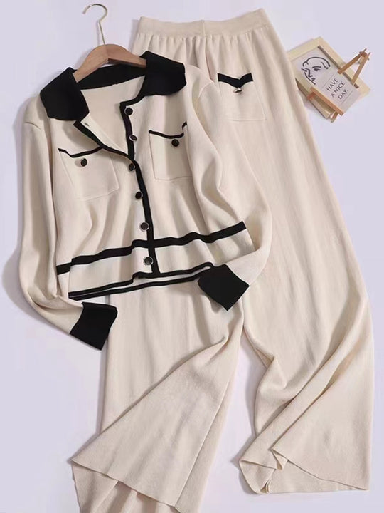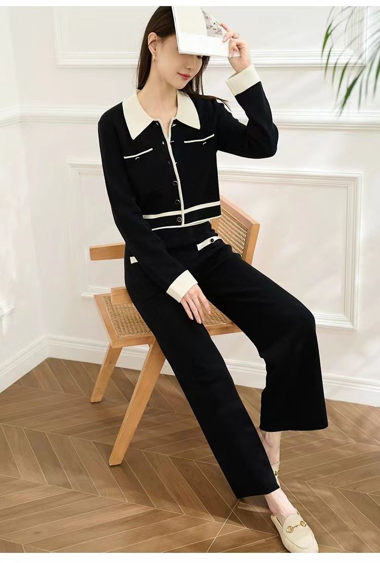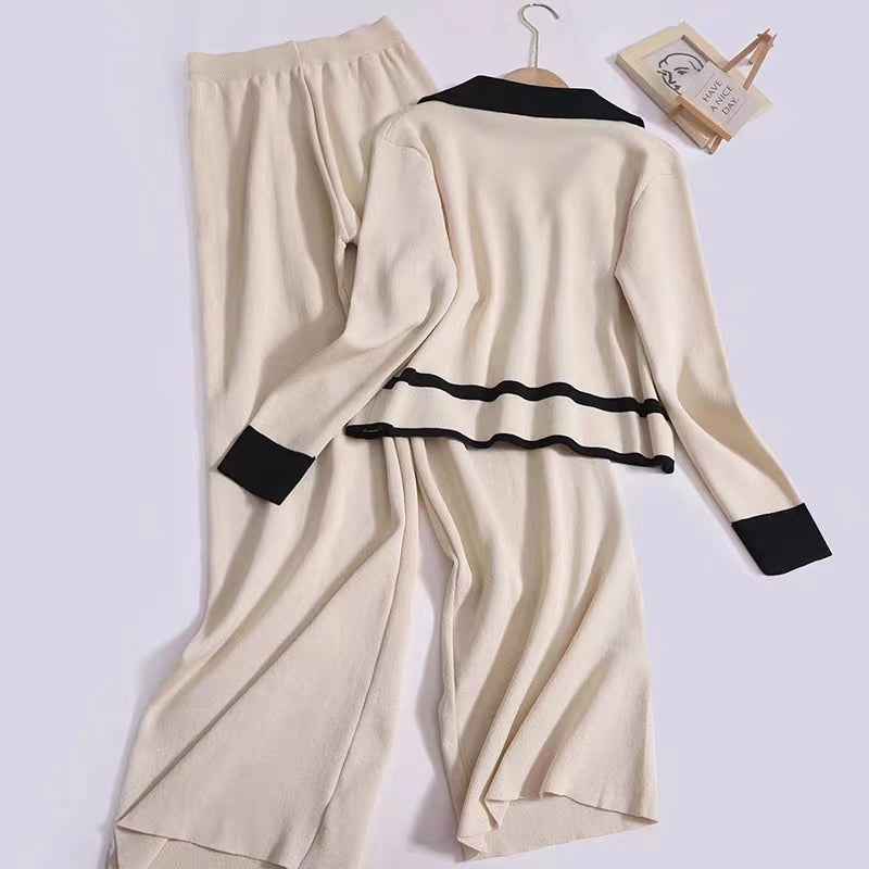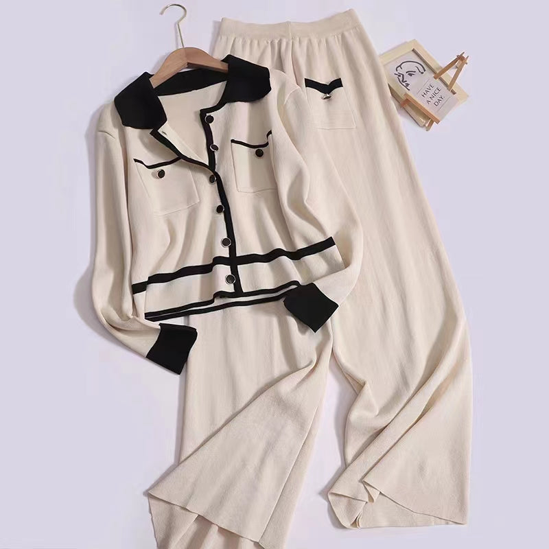 Our solid track set featuring wide-legged pants and long sleeves, round neck design top is for sure a show stopper. Tracksuits are all-year round-the-clock best sellers. The ribbed fabric and the lapel pattern add a touch to the aesthetics of the overall look.