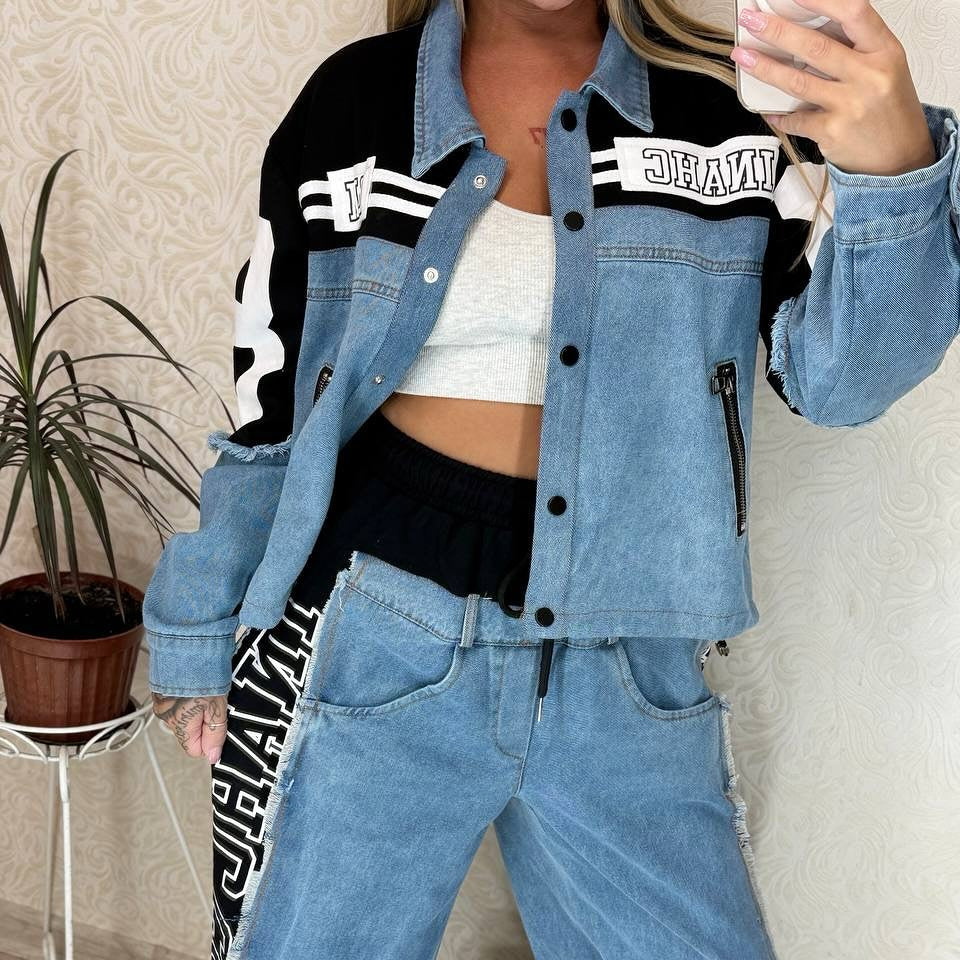 Our denim coordinated set with a baggy style jacket and joggers featuring a 3D patchwork is for sure a show stopper. Co-ord sets are all-year round-the-clock best sellers. From a day occasion to a night get-together, the patchwork detailing just adds a touch to the aesthetics of the overall look.
