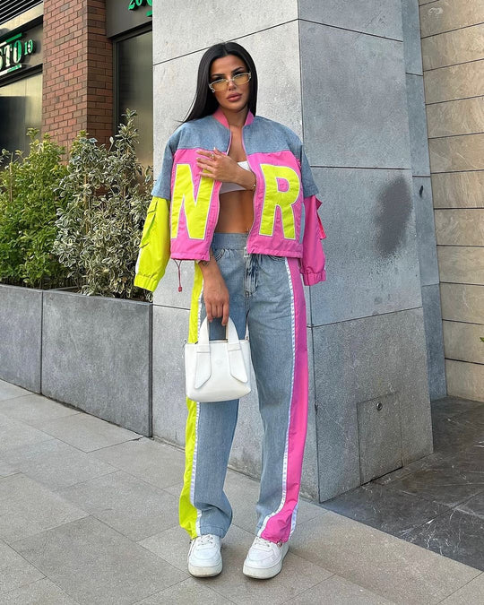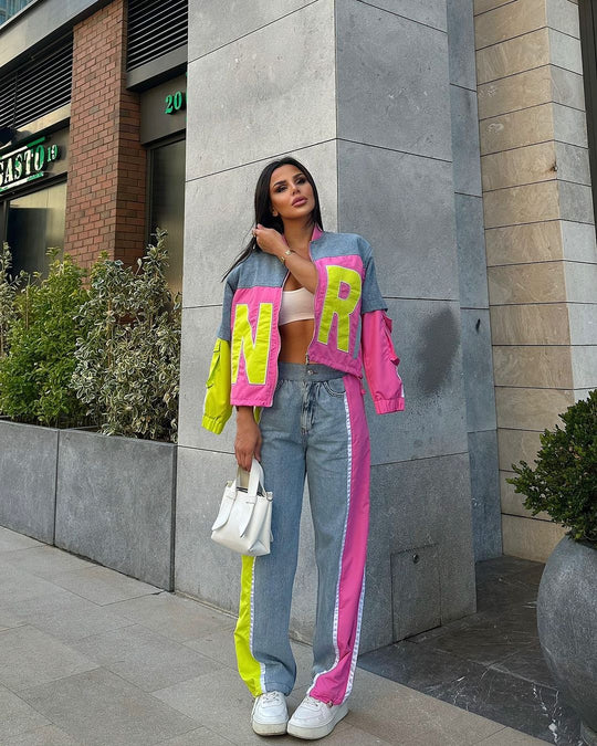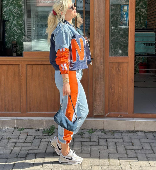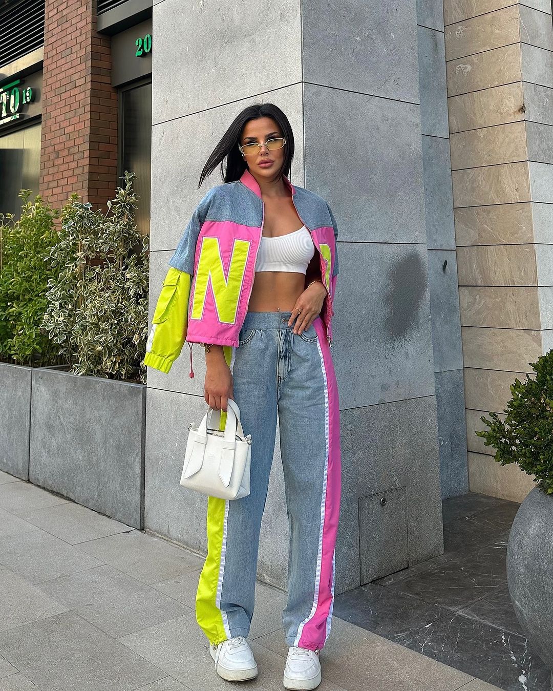 Our denim coordinated set with a baggy style zipper and joggers featuring a 3D print is for sure a show stopper. Co-ord sets are all-year round-the-clock best sellers. From a day occasion to a night get-together, the printed detailing just adds a touch to the aesthetics of the overall look.