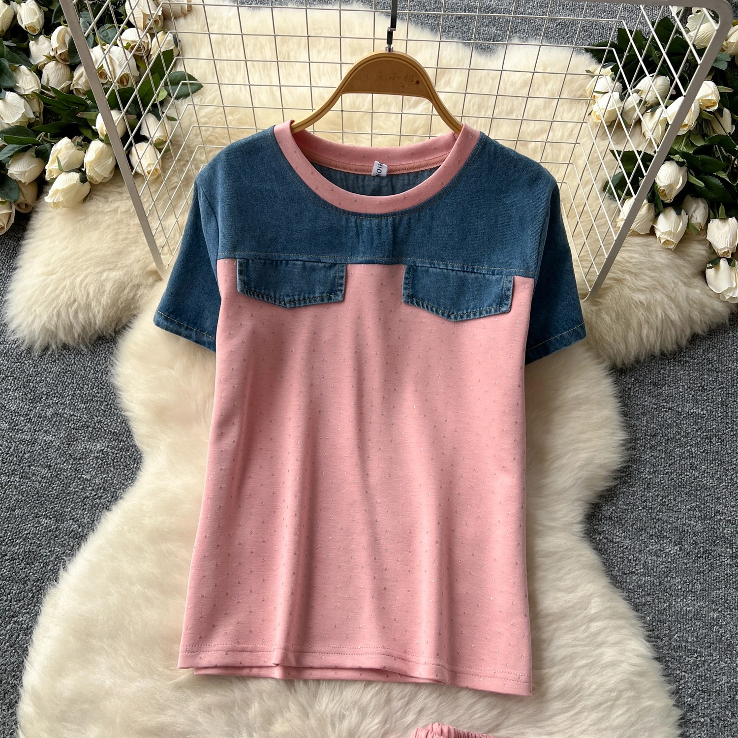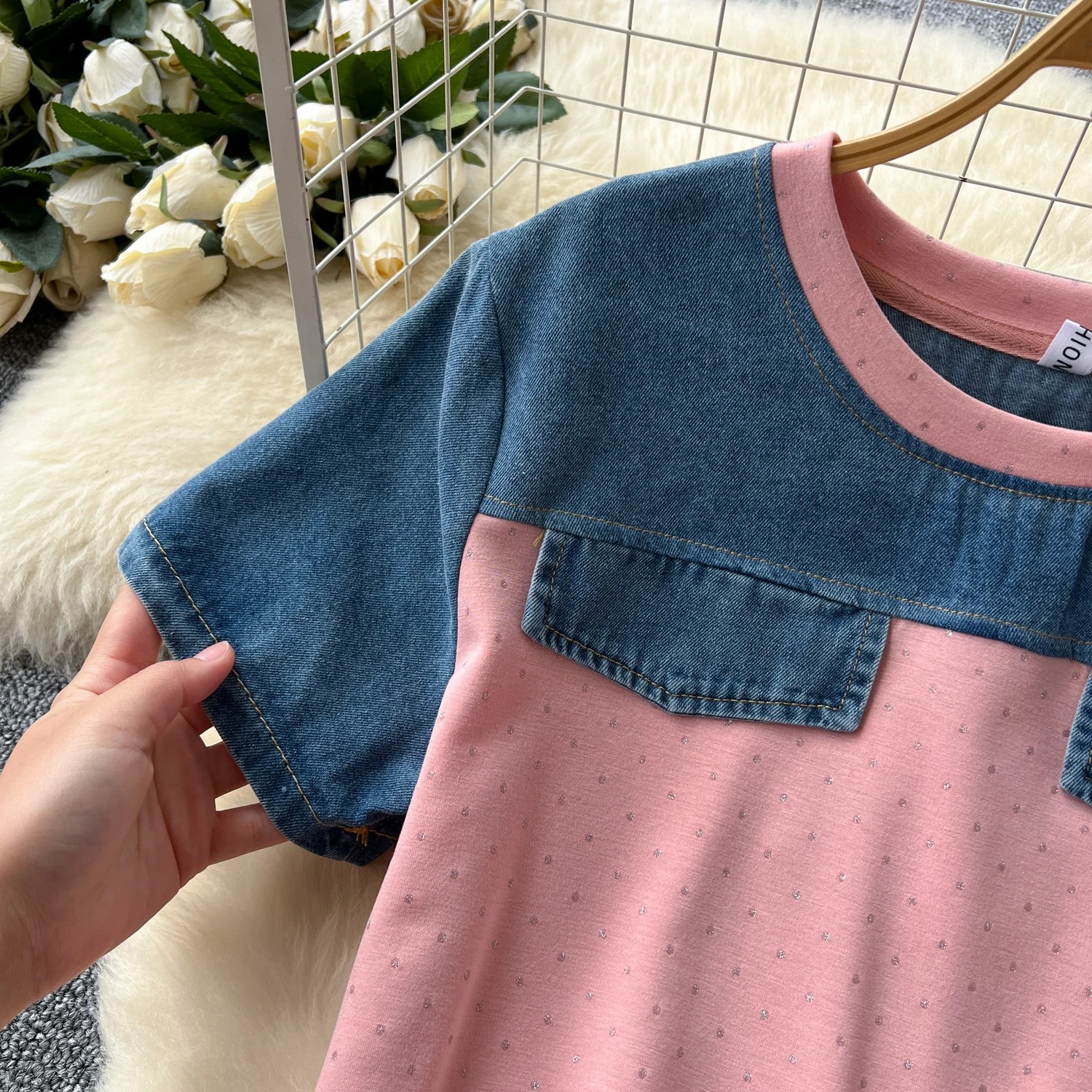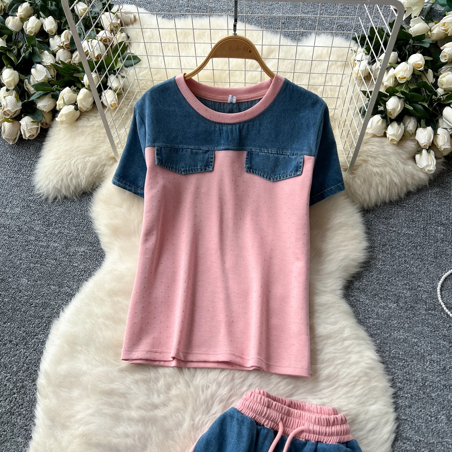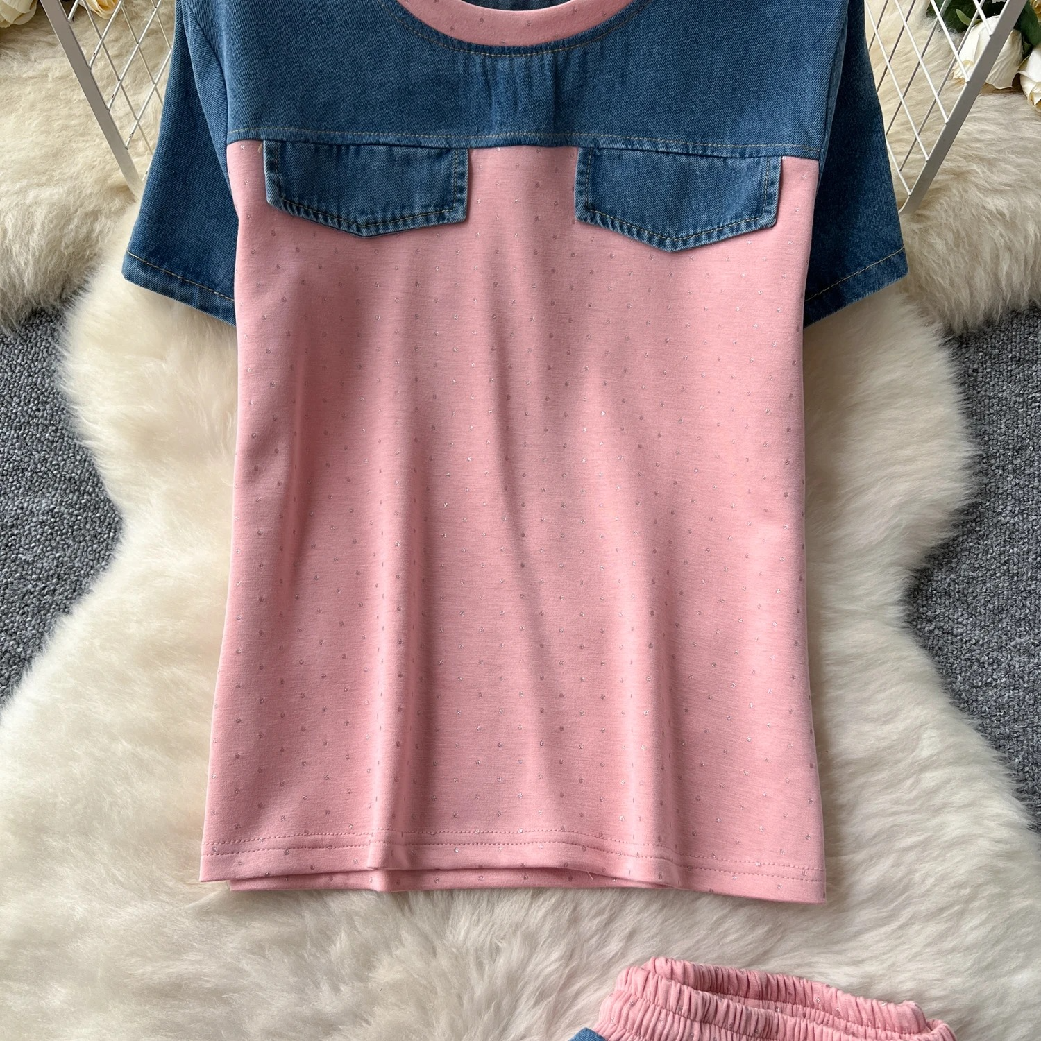 Our coordinated Summer set featuring a coordinated Blouse with denim detailing and a coordinated wide legged denim panel pants is for sure a show-stopper. Summer sets are all year round clock best sellers. From a day occasion, tonight's get-together the minimalistic design detailing makes it a perfect set for all your vacation fits