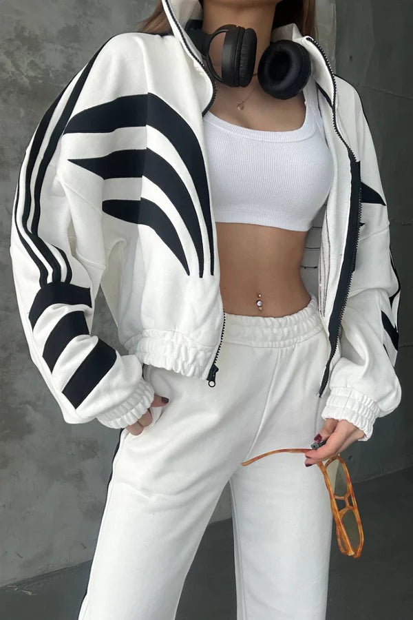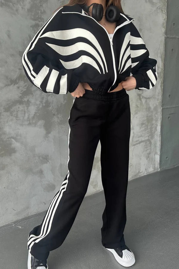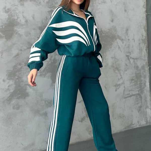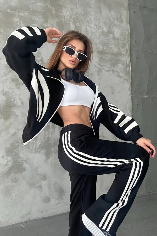 Our solid trackset featuring wide legged pants and long sleeves, Striped detailing on top and the bottoms is for sure a show stopper. Tracksuits are all-year round-the-clock best sellers. The striped pattern adds a touch to the aesthetics of the overall look.