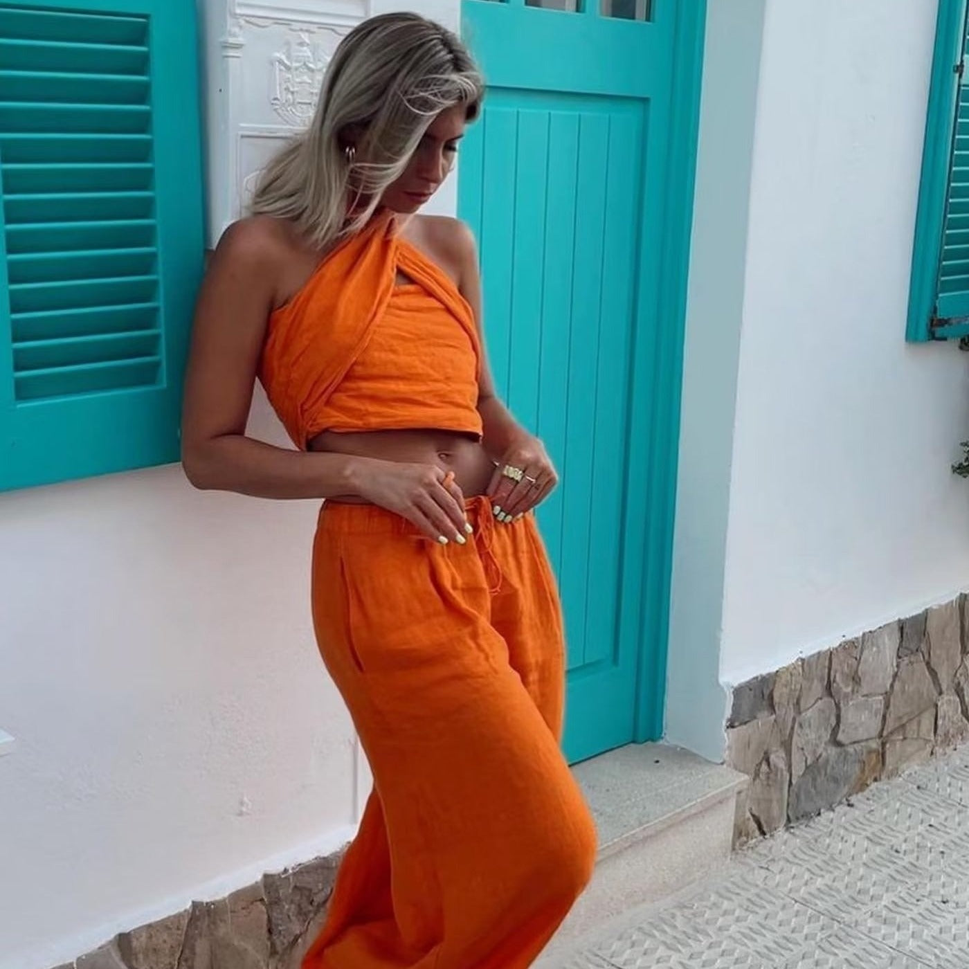 Our solid jumpsuit with ruffle detailing is for sure a show stopper. Jumpsuits are all-year round-the-clock best sellers. From a day occasion to a night get-together, the elegant frill pattern just add a touch to the aesthetics of the overall look.