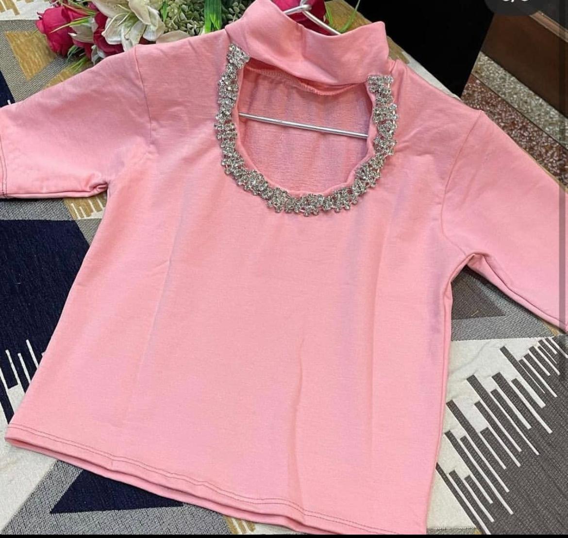 Our solid knitted top featuring beaded rhinestones on the neck is for sure a show stopper. Knitted tops are all year round the clock best sellers. From a day occasion or a night get together, they are the perfect fit. Our top featuring studded rhinestones just adds a touch to the aesthetics of the overall look.