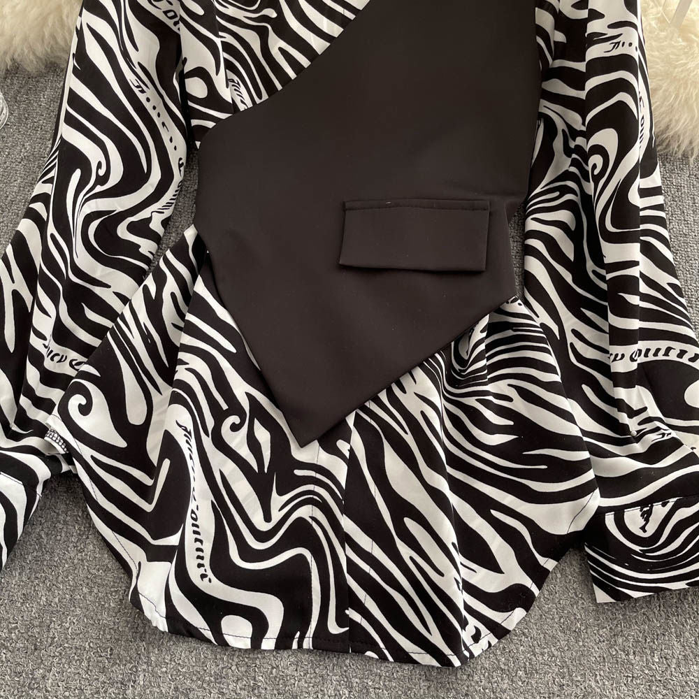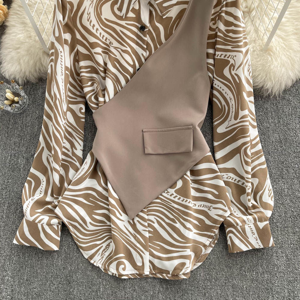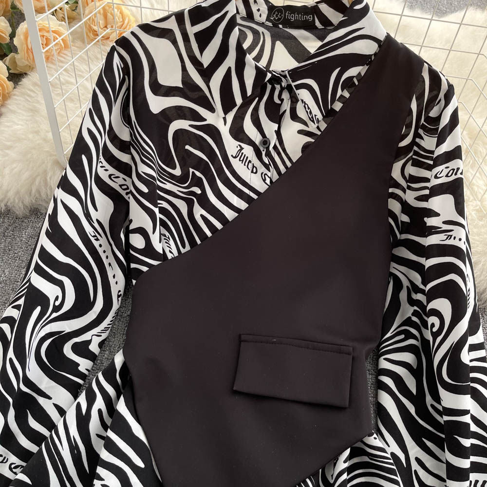 Our printed shirt featuring a zebra print with attached vest and a belt is for sure a show stopper. Printed Blouses are all year round clock best sellers. From a day occasion, tonight's get-together. Our button up blouse featuring attached vest with belt just adds a touch to the overall look's aesthetics.