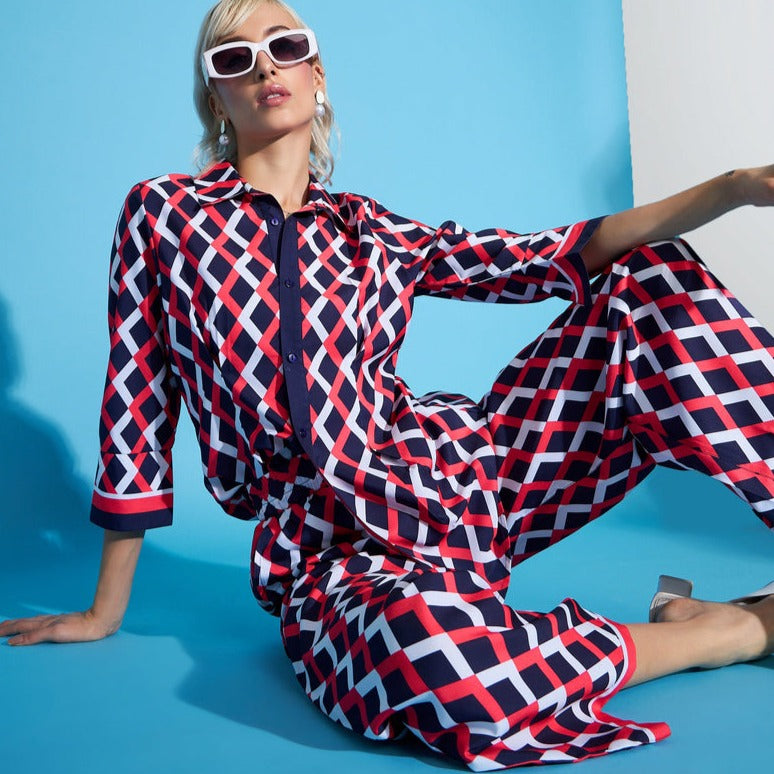 Our printed Coord set with featuring a contemporary print is for sure a show stopper. Printed Sets are all year round clock best sellers. From a day occasion, tonight's get-together, the bohemian print, and a classic collar just add a touch to the overall look's aesthetics.