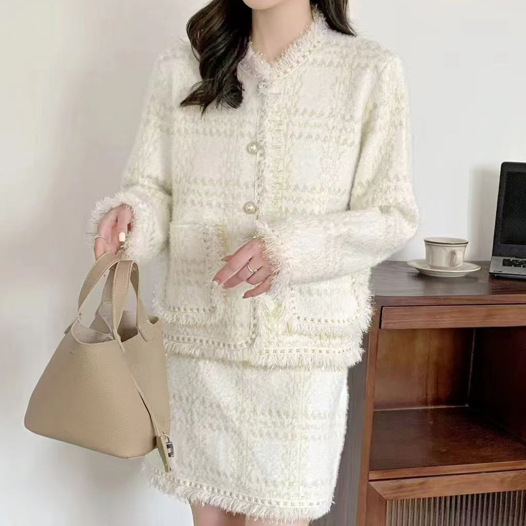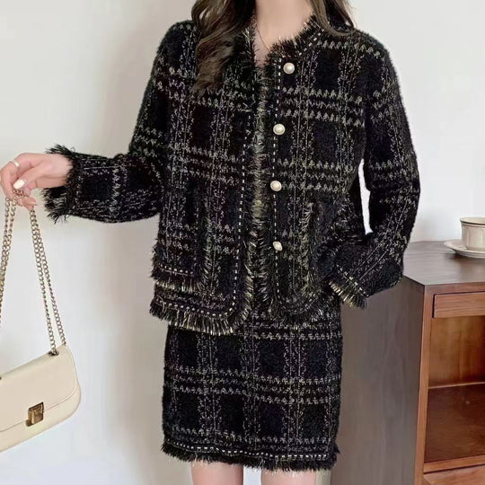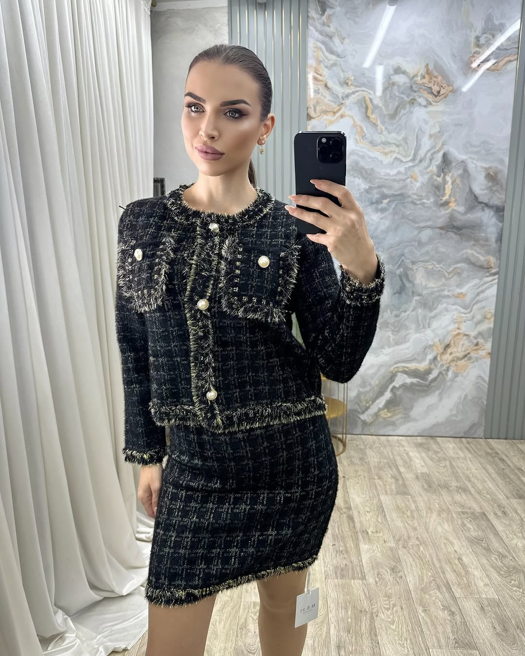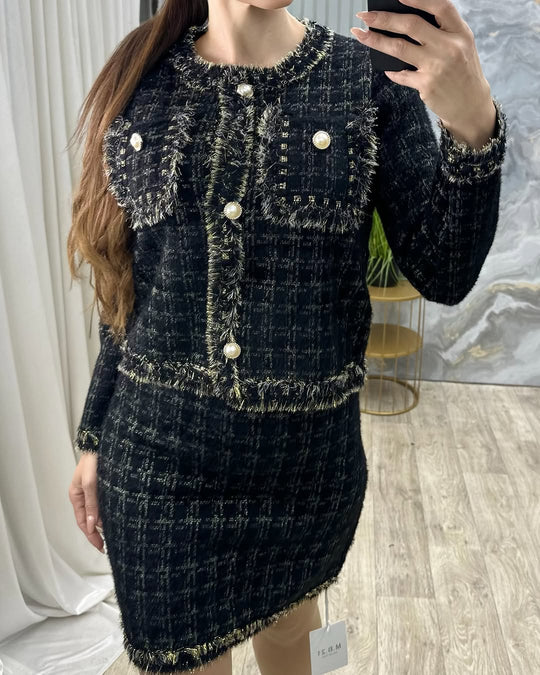 Our plaid coordinated set with high waisted mini skirt and coordinating tweed blazer with embelished button detailing is for sure a show stopper. Co-ord sets are all-year round-the-clock best sellers. From a day occasion to a night get-together, the plaid pattern just adds a touch to the aesthetics of the overall look.