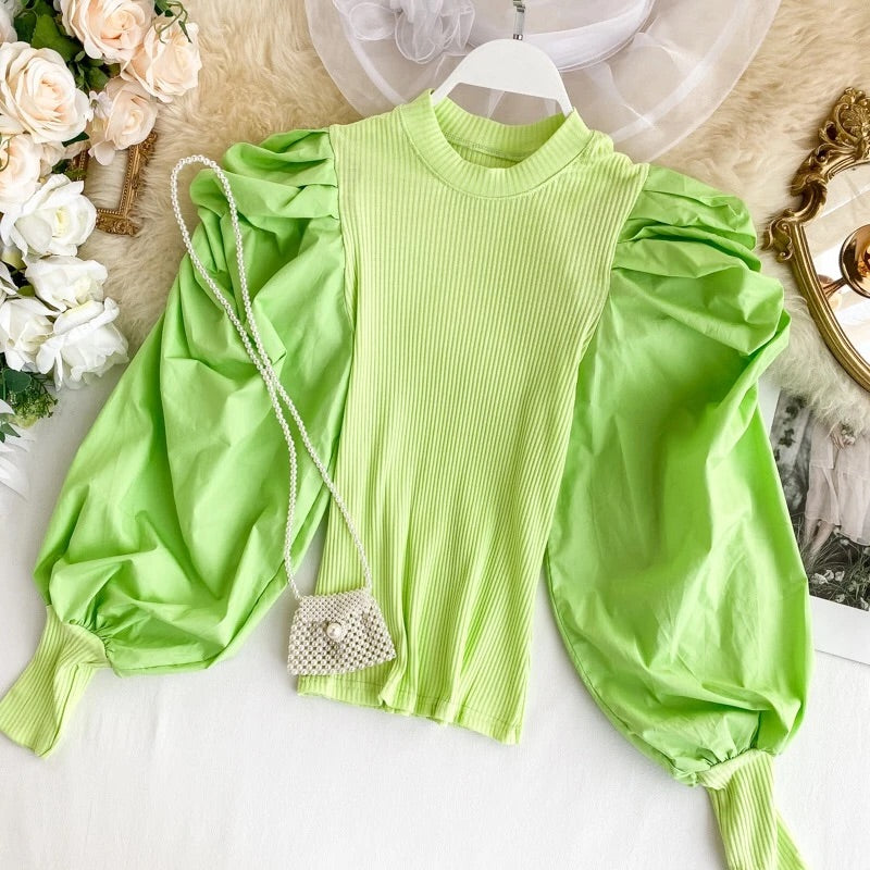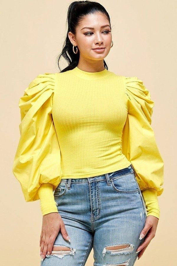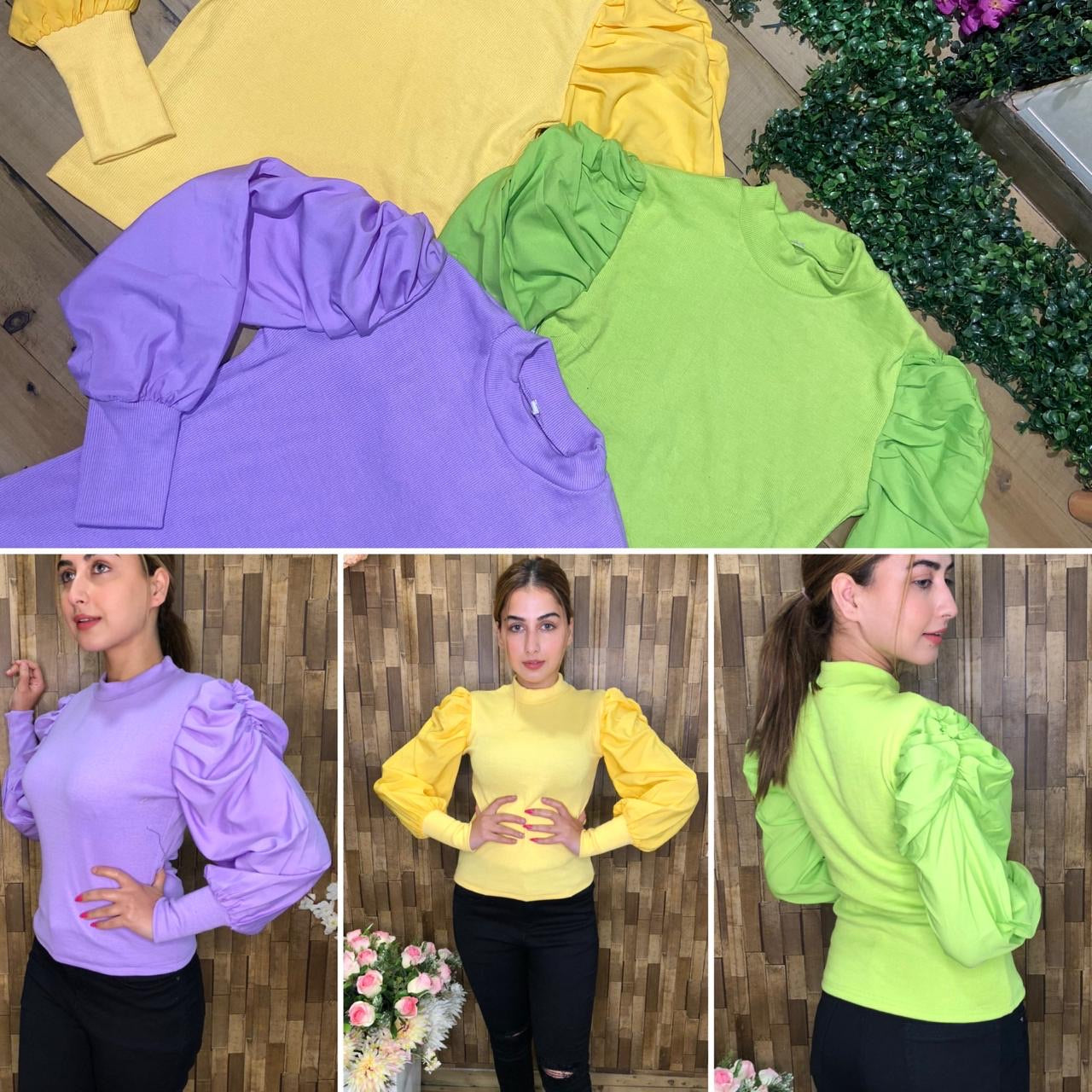 Our monotone body-hugging top in the imported knitting fabric featuring puffed sleeves is for sure a show stopper. puffed sleeves are all year round clock best sellers. From an outdoor get-together to a festive look, these tops are the perfect fit. The fusion of the chic look and monotone color just adds a touch to the aesthetics of the overall look.