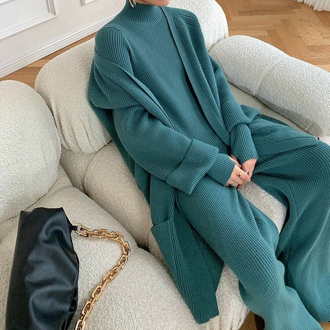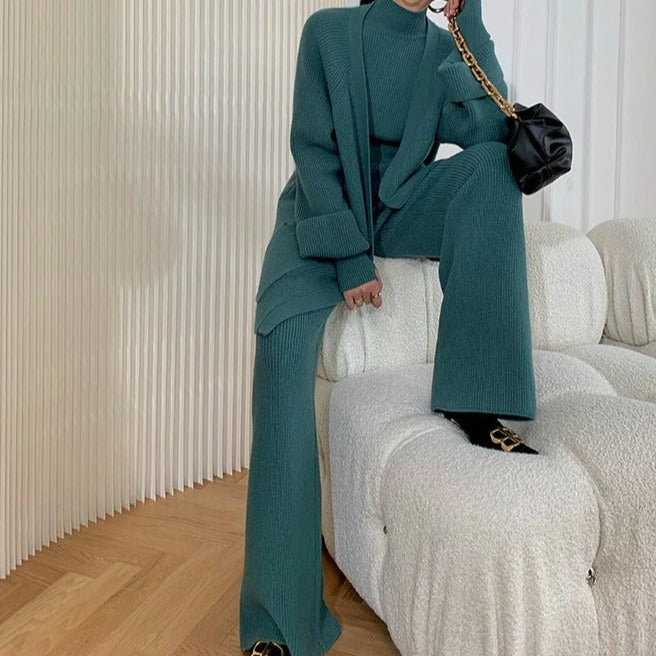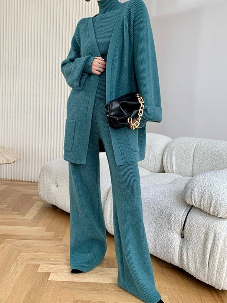 Our solid track set featuring wide-legged pants and long sleeves, round neck design top along with Coordinated shrug is for sure a show stopper. Tracksuits are all-year round-the-clock best sellers. The ribbed pattern adds a touch to the aesthetics of the overall look.