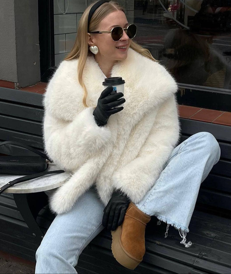 Our faux fur coat with classic lapel is a must-have winter essential.From a day occasion to night get together, fur coats are the perfect fit. The chic detailing just adds a touch to the aesthetics of the overall look.