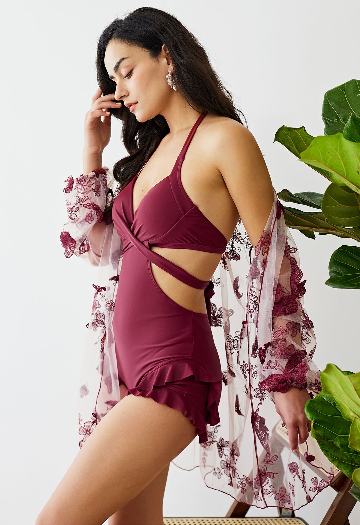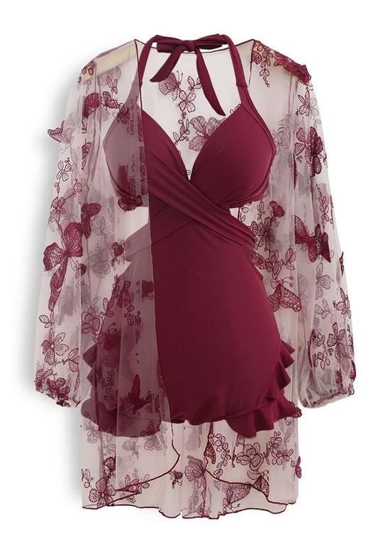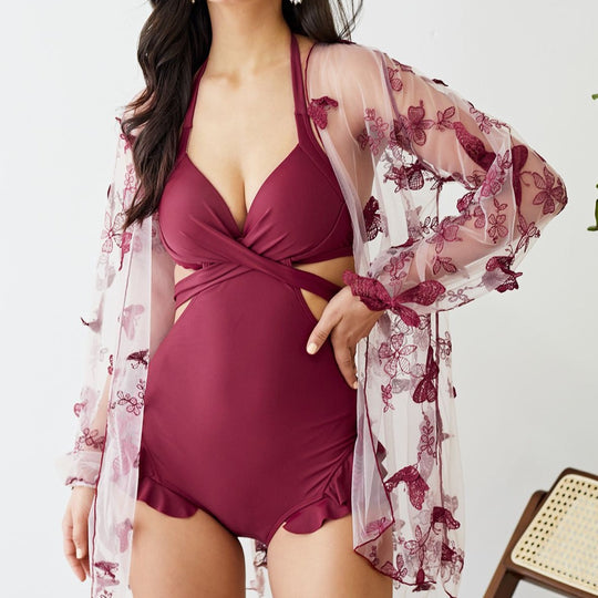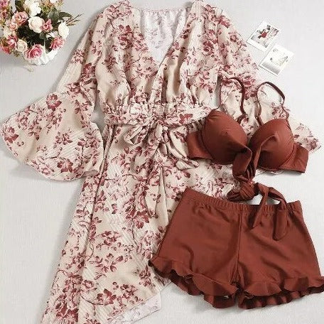 Our three-piece swimming suit set including a cover-up, bikini with padding with swimming shorts are a must-add outfit to your beach or swimwear. From a day at the beach or a pool party, our swimming suit set just adds a touch to the aesthetics of the overall look.