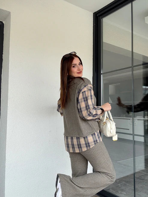 Our Plaid Coord set with contrasting asymmetric full sleeves vest and wide leg pants in pure winter friendly fabric. COORD SETS are all year round clock best sellers. From a day occasion, tonight's get-together, the plaid style, plaid detailing wide-legged pants just add a touch to the overall look's aesthetics.