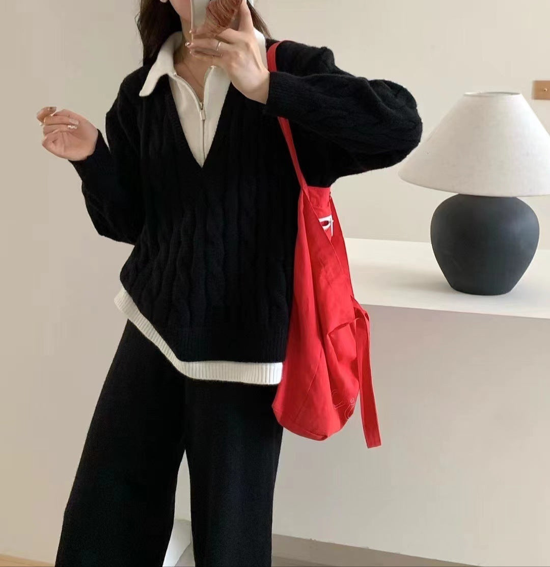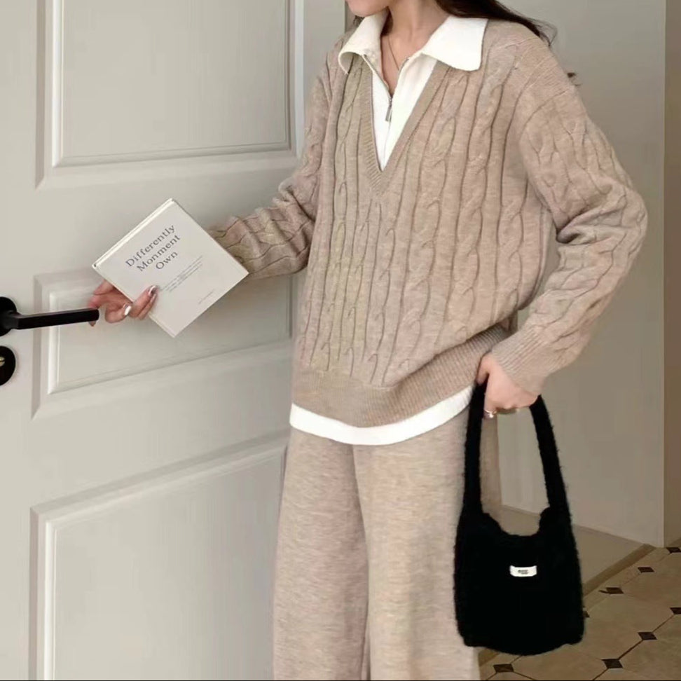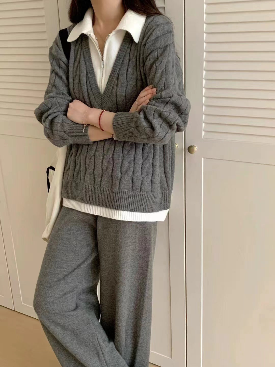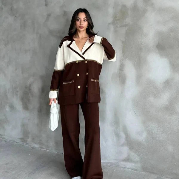 Our solid track set featuring wide-legged pants and contrasting collar Pullover is for sure a show stopper. Tracksuits are all-year round-the-clock best sellers. The classic soft wool fabric and the lapel pattern add a touch to the aesthetics of the overall look.