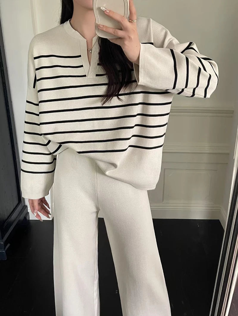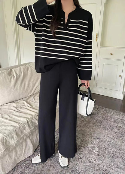Our solid trackset featuring wide legged pants and long sleeves, geometric design on top with halter jumper is for sure a show stopper. Tracksuits are all-year round-the-clock best sellers. The ribbed pattern adds a touch to the aesthetics of the overall look.