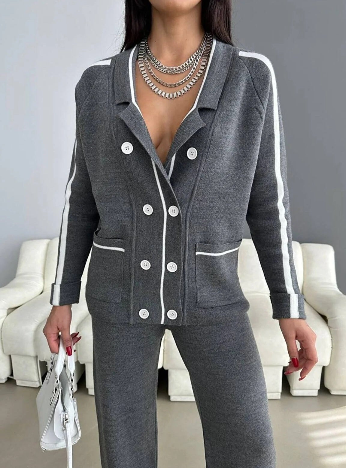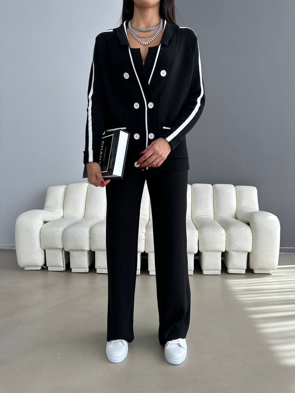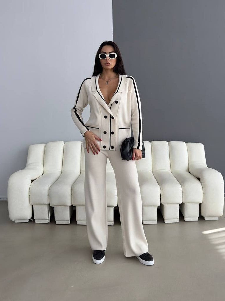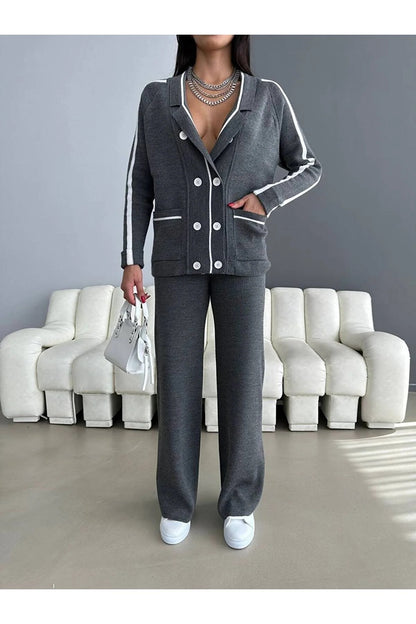Our solid track set featuring wide-legged pants and long sleeves, round neck design top is for sure a show stopper. Tracksuits are all-year round-the-clock best sellers. The ribbed fabric and the lapel pattern add a touch to the aesthetics of the overall look.
