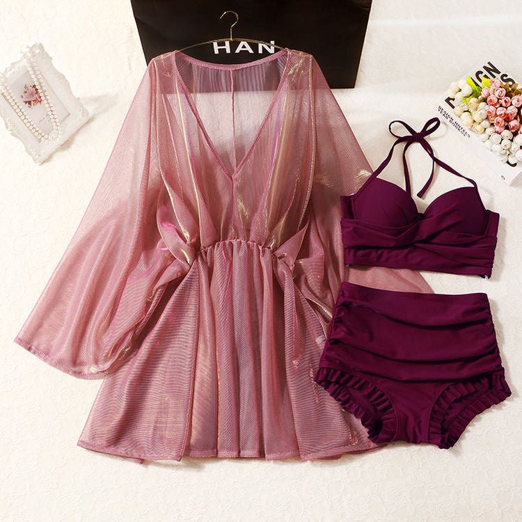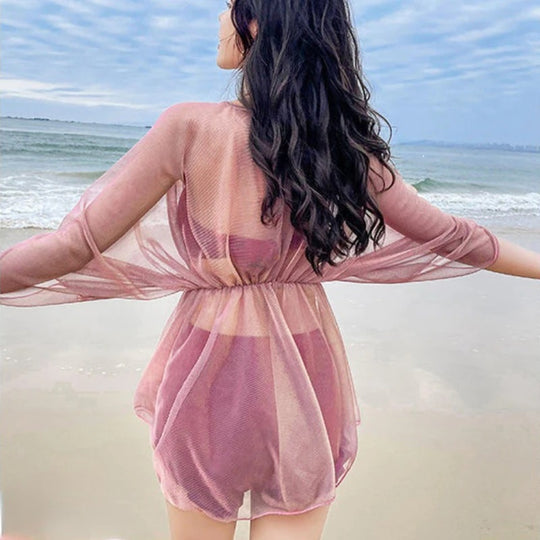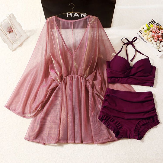 Our three-piece swimming suit set including a cover-up, bikini with padding, and swimming shorts are a must-add outfit to your beach or swimwear. From a day at the beach or a pool party, our swimming suit set just adds a touch to the aesthetics of the overall look.