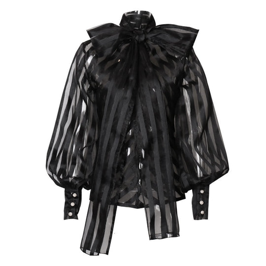 Our Organza blouse featuring a retro style striped pattern with lace up Bow and lantern pattern is for sure a show stopper. Organza Blouses are a new trendsetter and are all year round clock best sellers. From a day occasion to a get-together, retro pattern just adds a perfect touch to the aesthetics of the overall look.