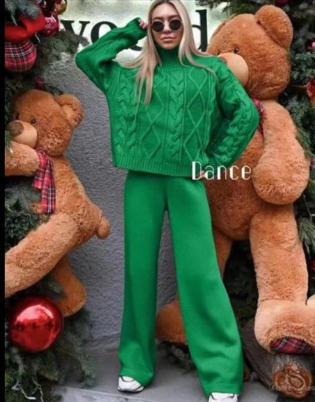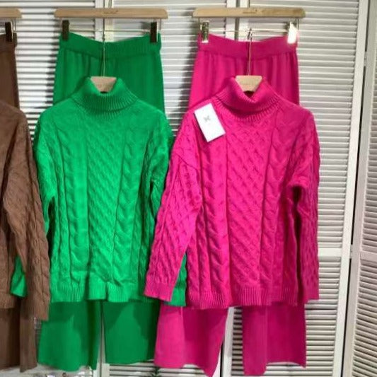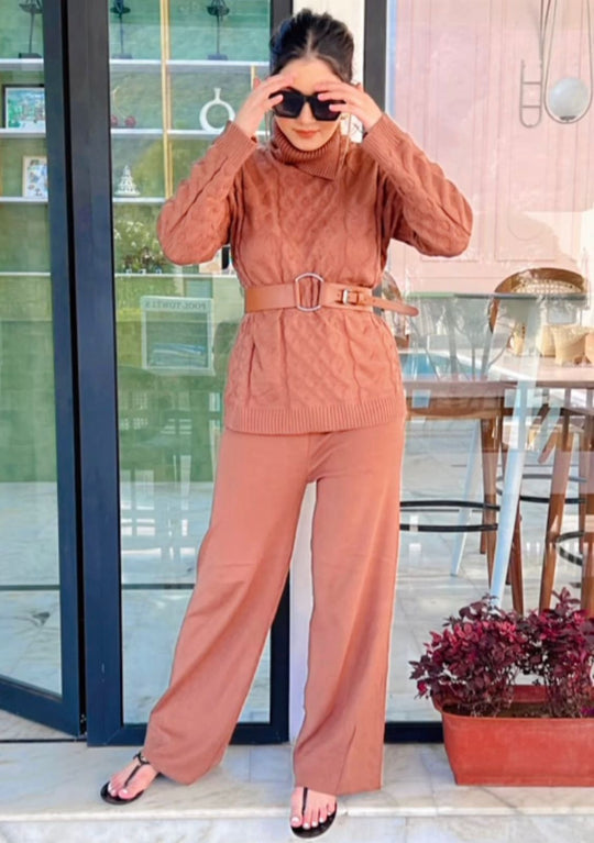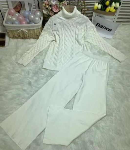 Our solid track set featuring wide-legged pants and long sleeves, a round neck design top with twisted Wool detailing is for sure a show stopper. Tracksuits are all-year round-the-clock best sellers. The twisted wool pattern adds a touch to the aesthetics of the overall look.