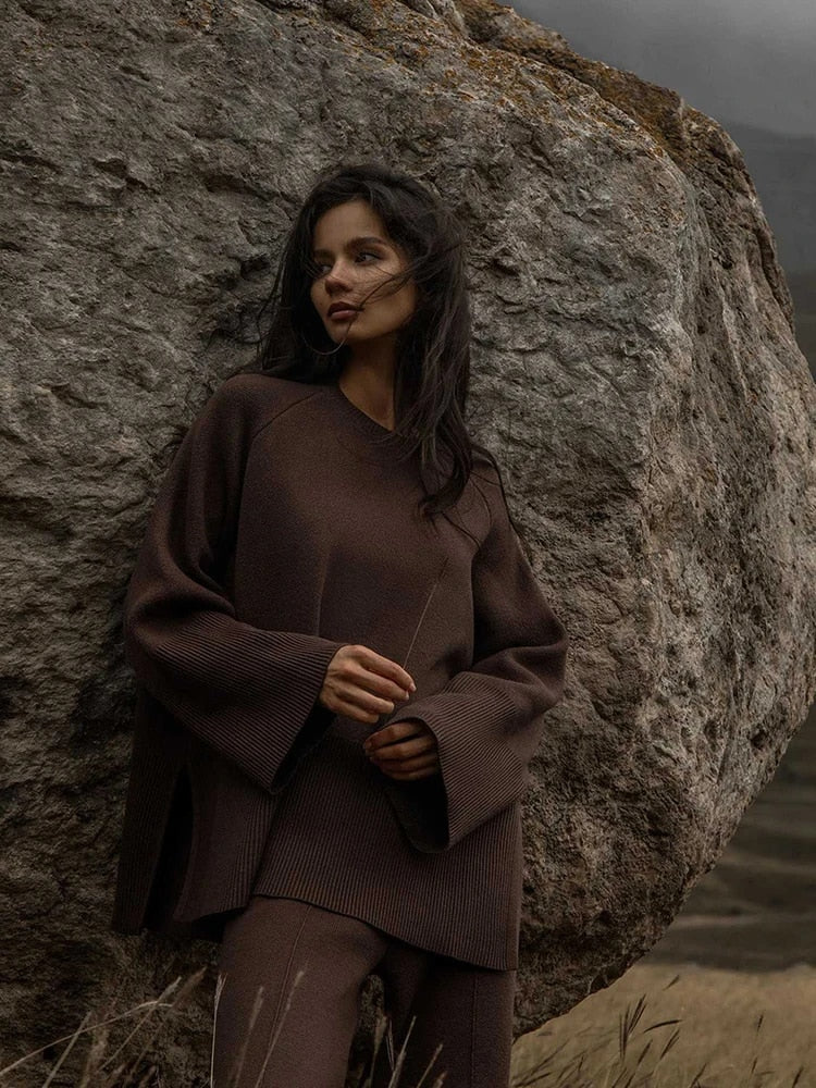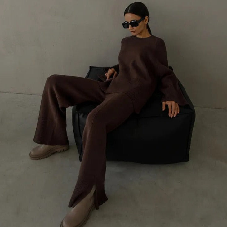 Our solid trackset featuring wide legged pants and long sleeves is for sure a show stopper. Tracksuits are all-year round-the-clock best sellers. The ribbed pattern adds a touch to the aesthetics of the overall look.