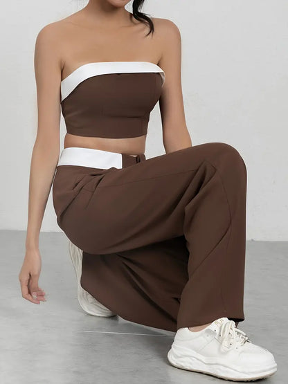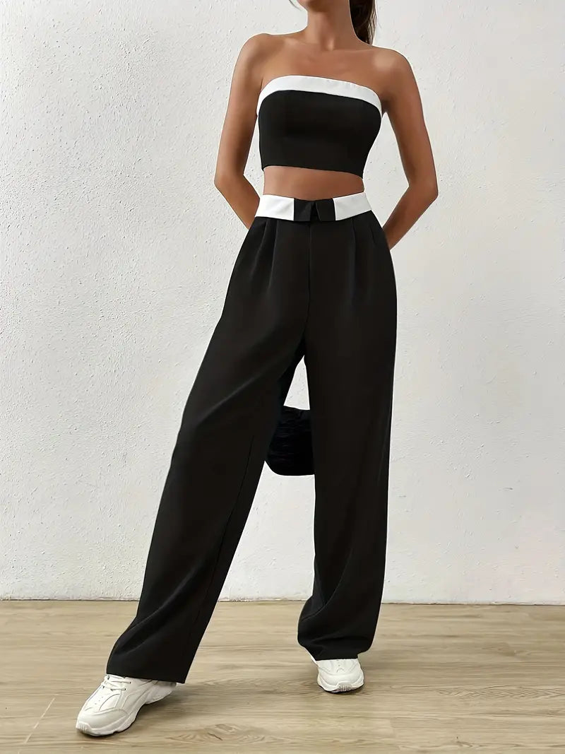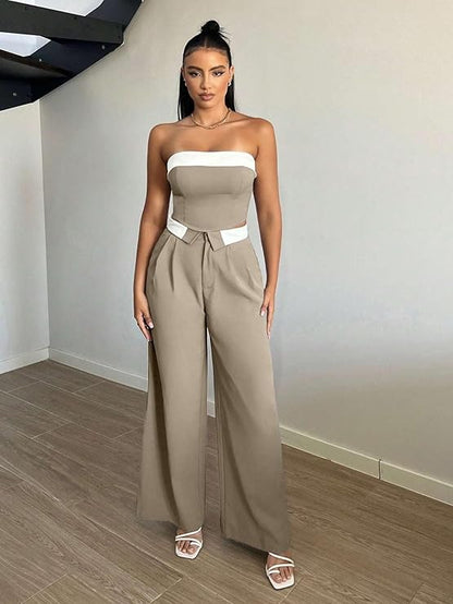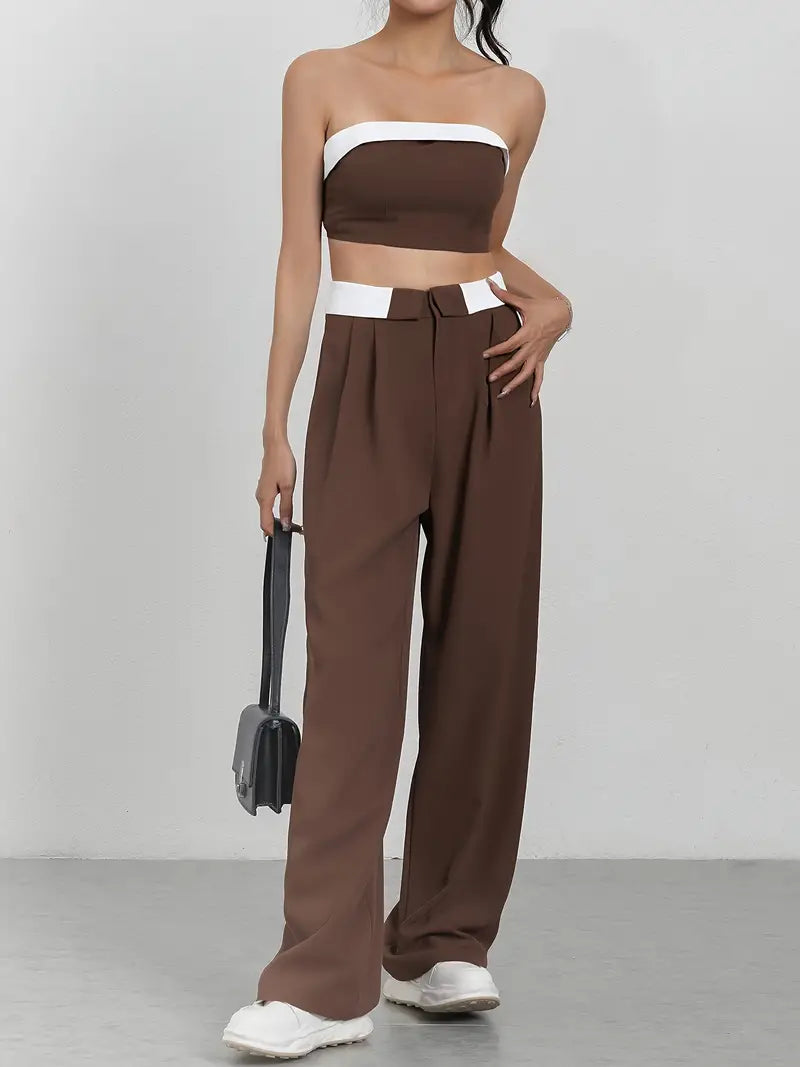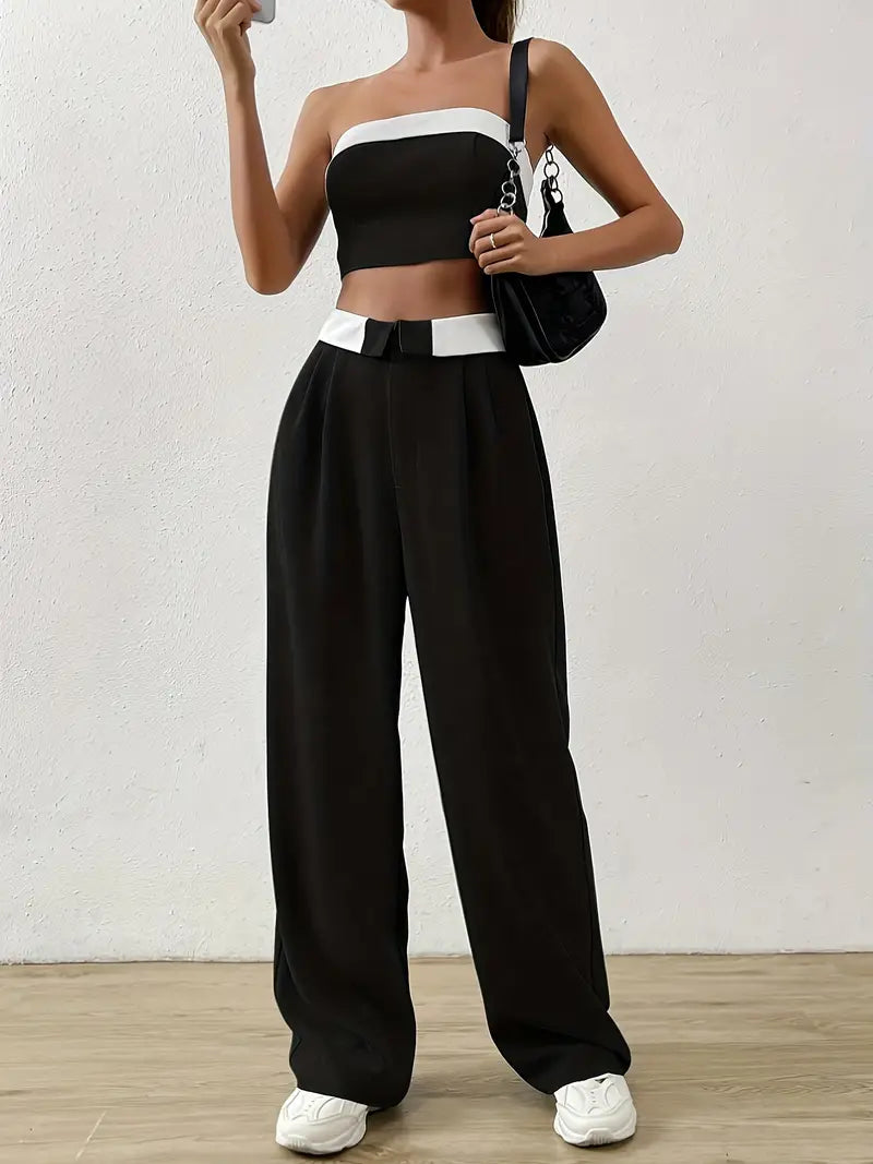 features: high waisted pants and blouse