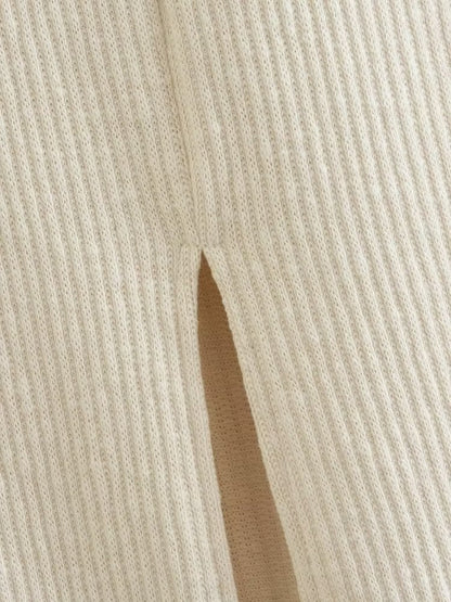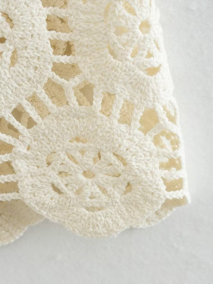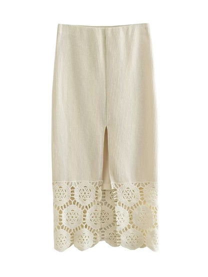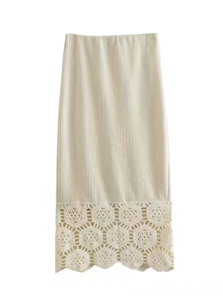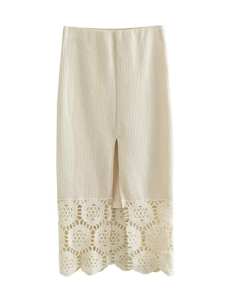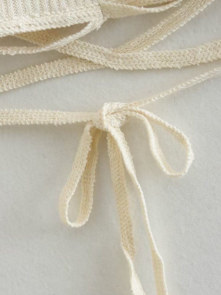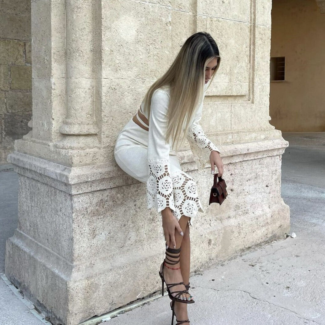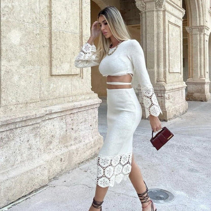 Our knitted Coord Set featuring crochet detailing with tied waist detailing and a thigh-high split skirt is for sure a show stopper. COORD SETS are all year round clock best sellers. From a day occasion, tonight's get-together, the vintage detailing and high-rise slit just add a touch to the overall look's aesthetics.