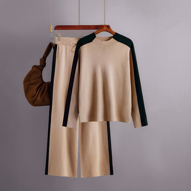 Our solid track set featuring wide-legged pants and long sleeves, round neck design top is for sure a show stopper. Tracksuits are all-year round-the-clock best sellers. The ribbed pattern adds a touch to the aesthetics of the overall look.