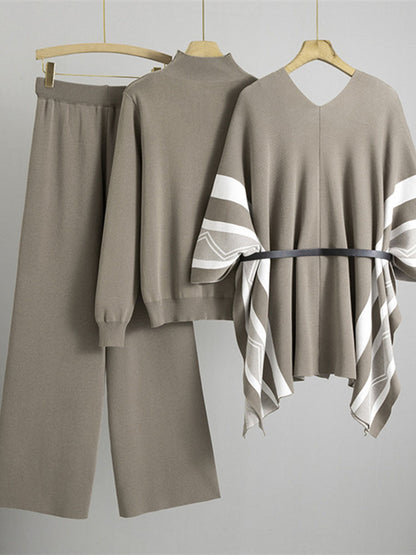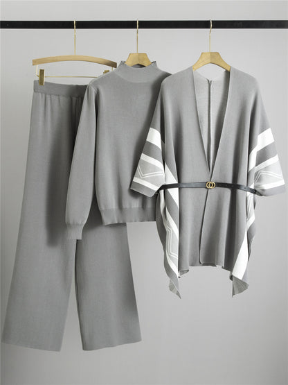 Our solid luxury three-piece set featuring a vest and a cover up and pants is for sure a show stopper. Tracksuits are all-year round-the-clock best sellers. The knitting pattern and the vest add a touch to the aesthetics of the overall look.