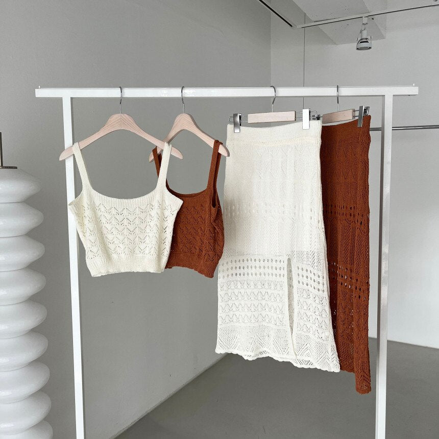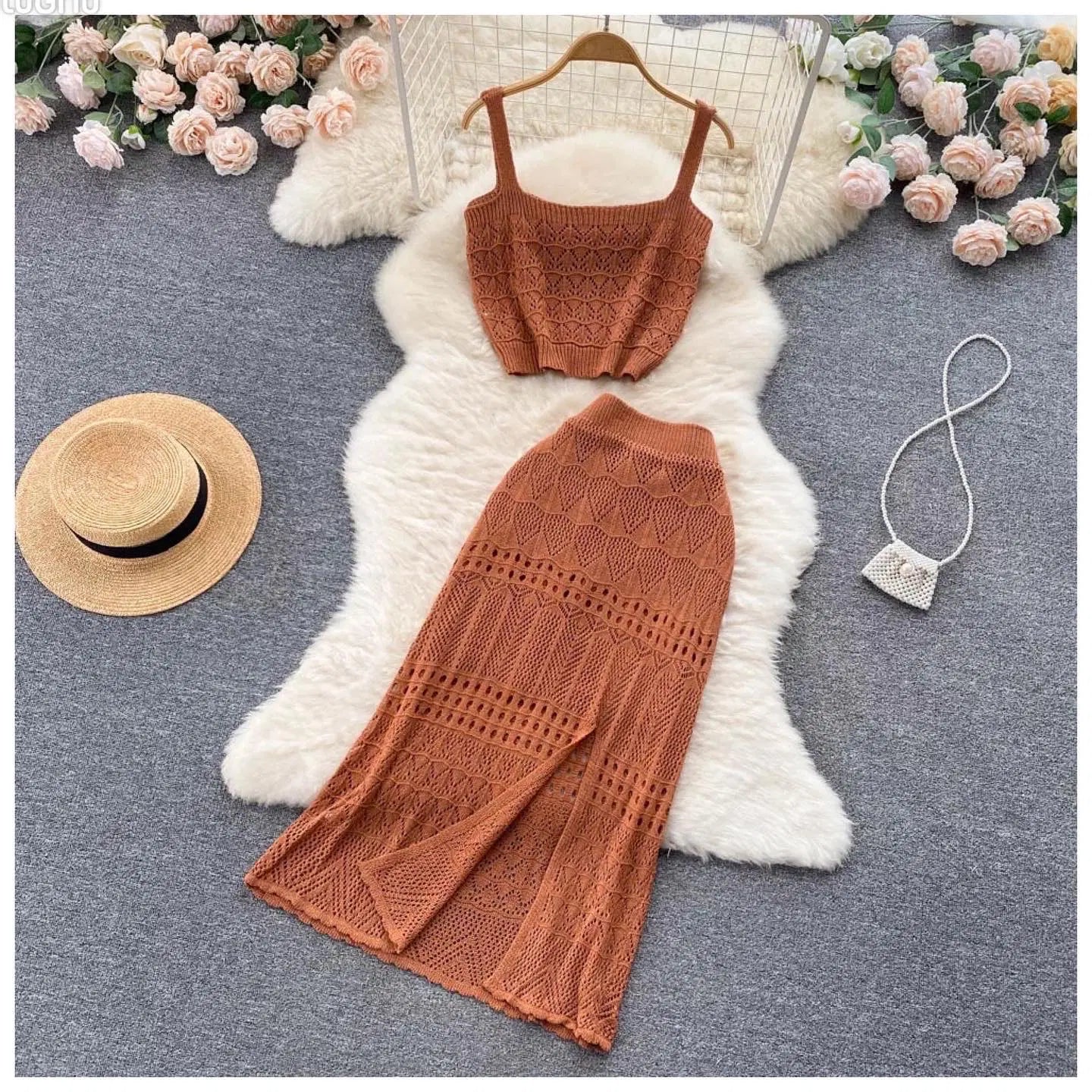 Our Crochet two-piece set including a crochet top and a high waisted Slit Skirt is a must-add outfit to your beach or swimwear. From a day at the beach or a pool party, our crochet set just adds a touch to the aesthetics of the overall look.