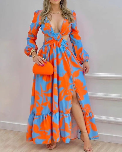 Our printed dress featuring side slit with a bow tie in back with elastic waist and V neck is for sure a show-stopper. Printed Dresses are all year round clock best sellers. From a day occasion, tonight's get-together the V neck detailing with backless pattern and side slits makes it a perfect dress for all your vacation fits
