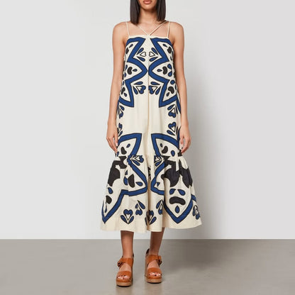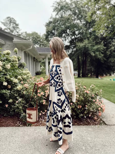 Our Printed Maxi dress featuring an elegant backless detailing with contrast is for sure a show-stopper. Maxi Printed Dresses are all year round clock best sellers. From a day occasion, tonight's get-together the backless detailing makes it a perfect dress for all your vacation fits