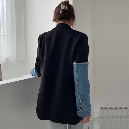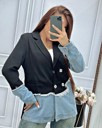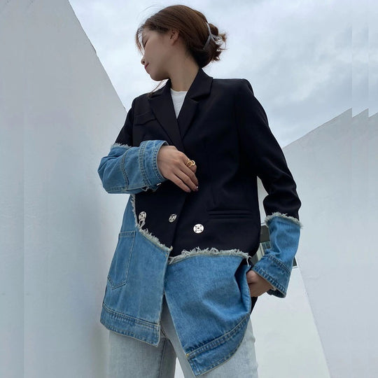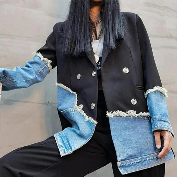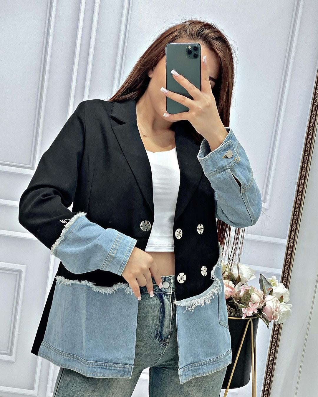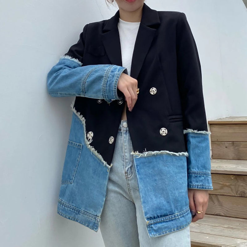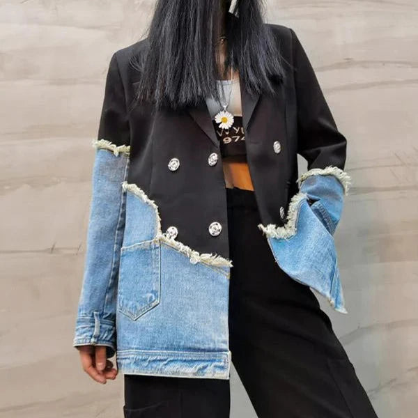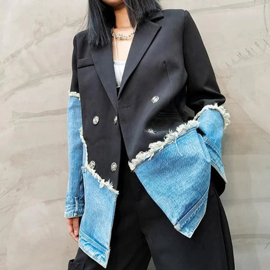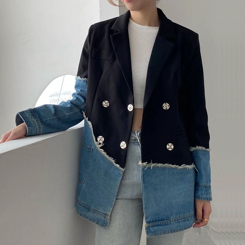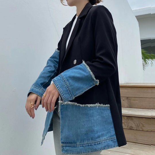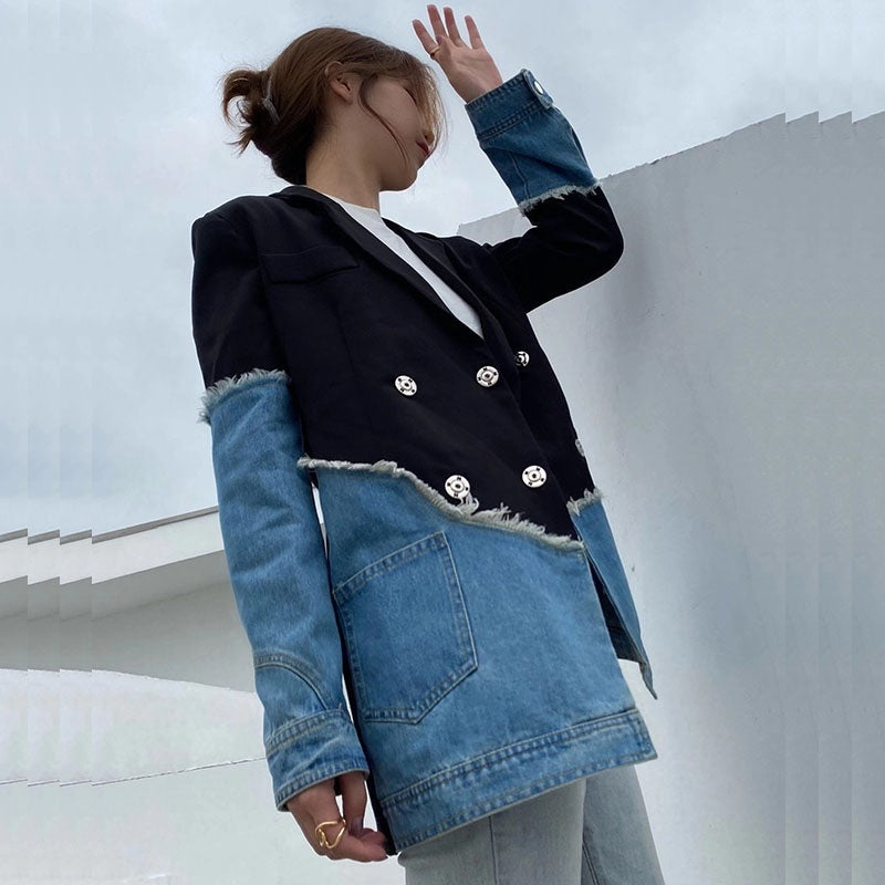 Our Monotone Blazer fabric featuring a classic lapel with Asymmetric Denim Patchwork is for sure a show stopper. Monotone Blazer are all year round clock best sellers. From a day occasion to a get-together, denim patchwork just adds a perfect touch to the aesthetics of the overall look.