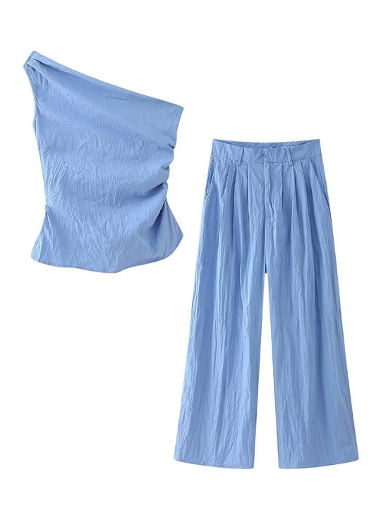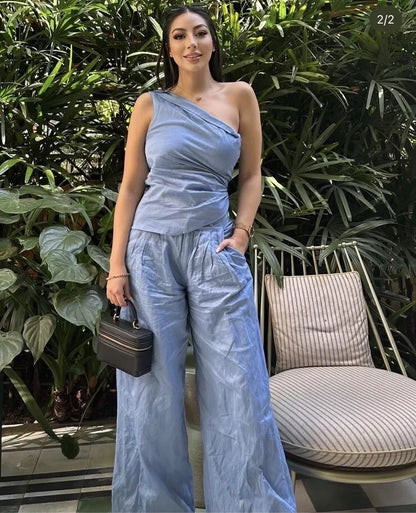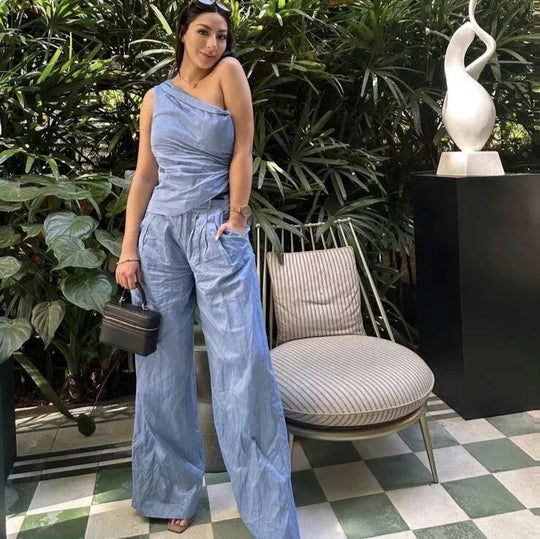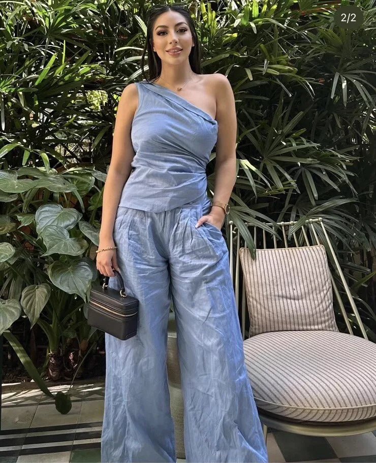 Our Coordinated Set in denim featuring wide legged pants with coordinated vest is for sure a show-stopper. COORD SETS are all year-round clock best sellers. From a day occasion, tonight's get-together, the formal style, and solid pattern detailing, vest and pants just add a touch to the overall look's aesthetics.