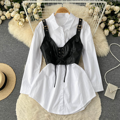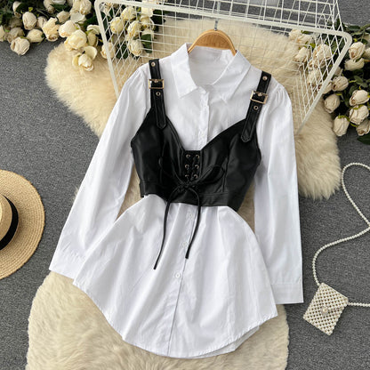 Our White blouse featuring a PU CamiSuit for sure a show stopper. Shirt Dresses are all year round clock best sellers. From a day occasion, tonight's get-together Shirtdress featuring camisuits just adds a touch to the overall look's aesthetics.