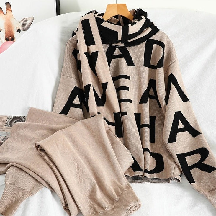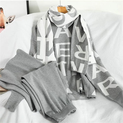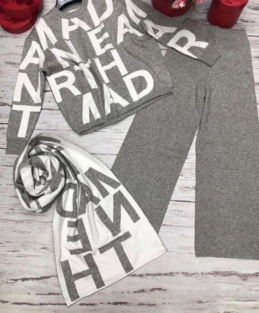 Our printed track set featuring wide-legged pants and long sleeves, round neck design top along with Coordinated cape long scarf is for sure a show stopper. Tracksuits are all-year round-the-clock best sellers. The ribbed pattern adds a touch to the aesthetics of the overall look.