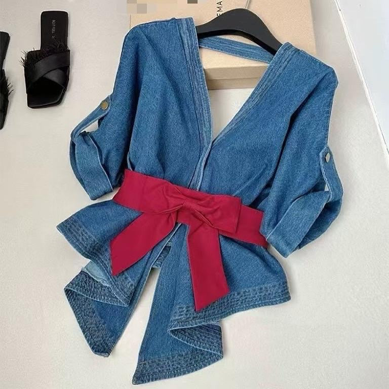 Bringing monotone Denim blouse featuring contrasting Bow detailing in summer friendly Denim Fabric . Denim Blouses are the new trendsetters. From a day occasion or a night get-together, they are the perfect fit. Our monotone blouse featuring the bow detailing just adds a touch to the aesthetics of the overall look.