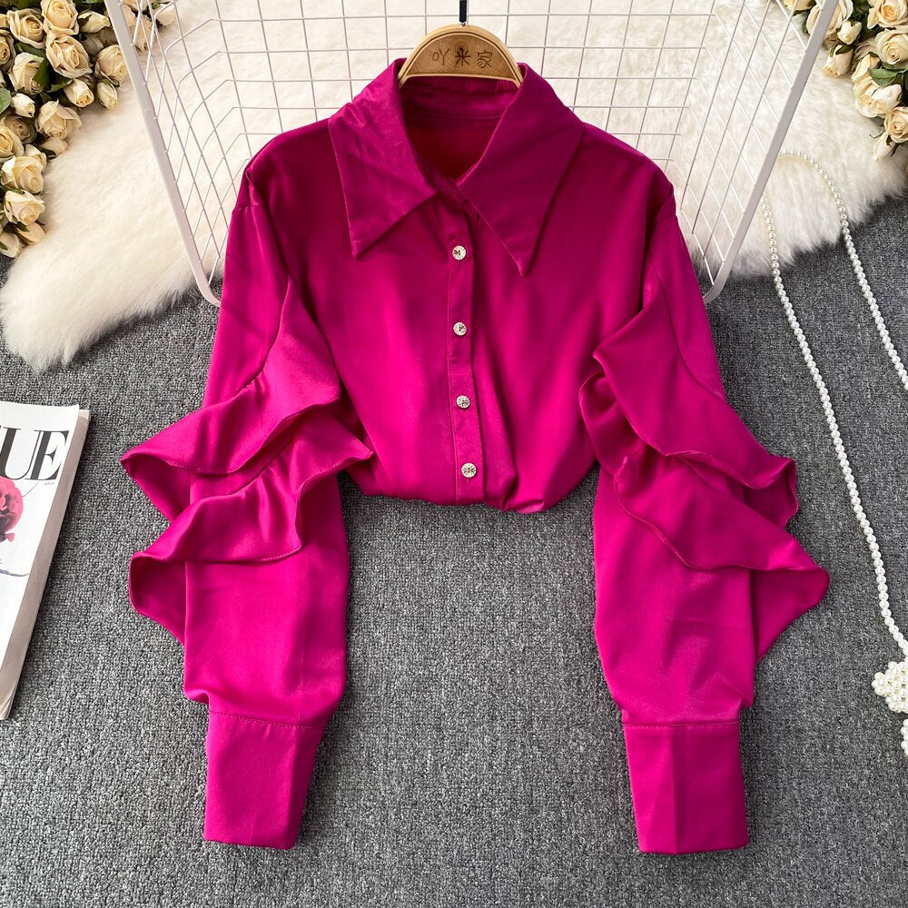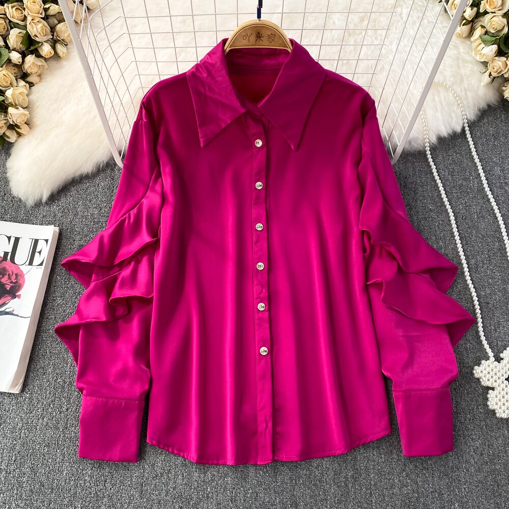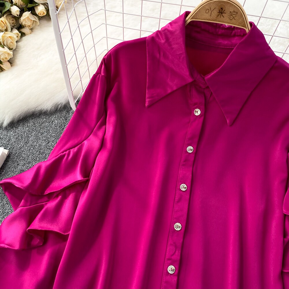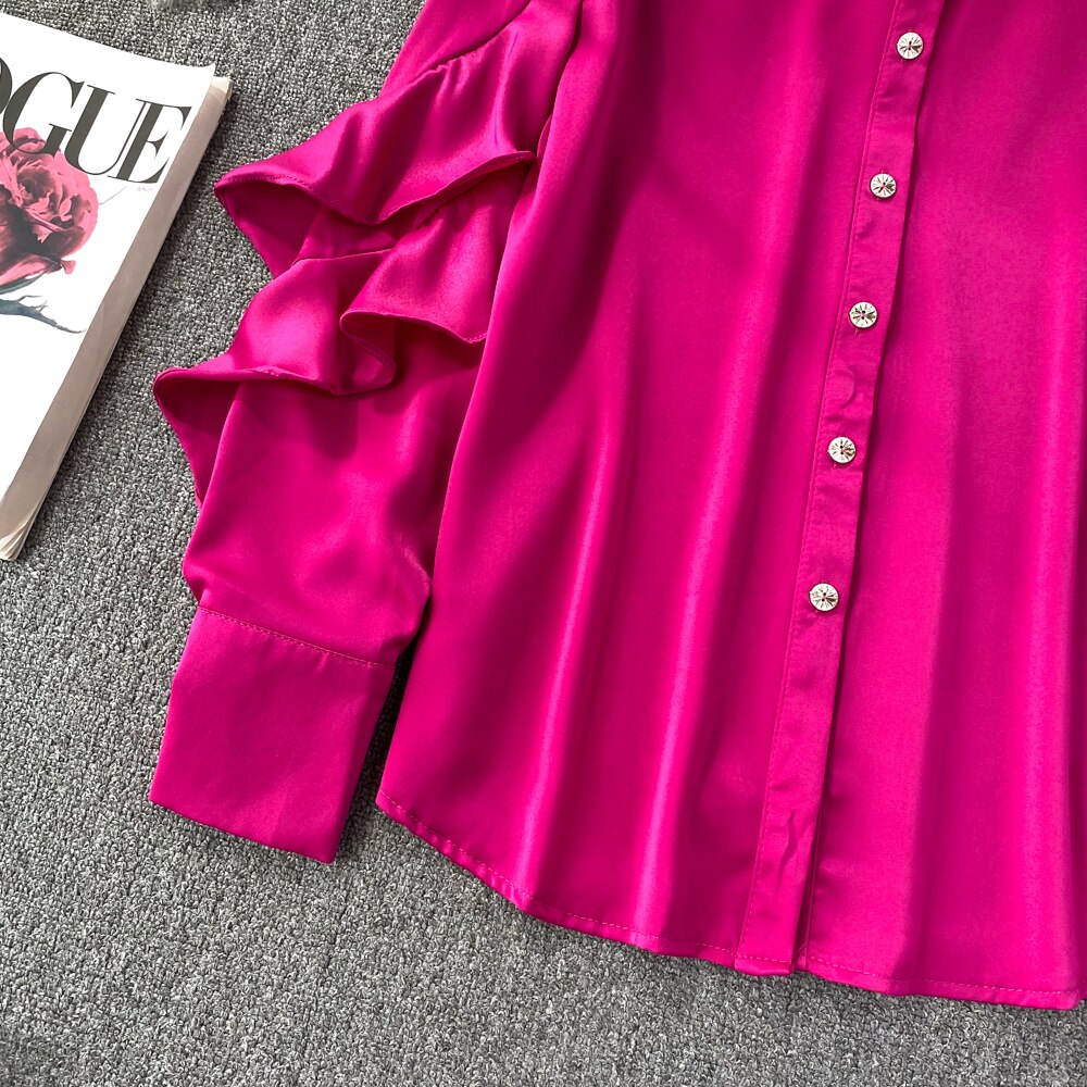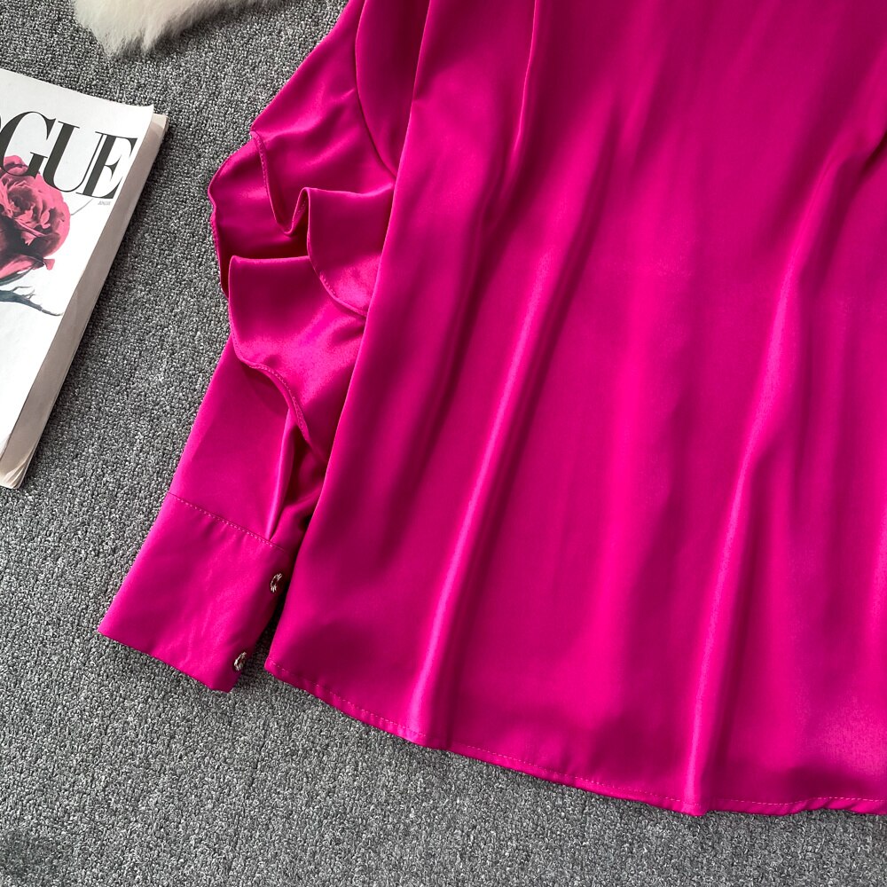 Our satin shirt featuring a ruffle pattern is for sure a show stopper. Satin shirts are all year round clock best sellers. From a day occasion to a get-together, solid pattern just add a perfect touch to the aesthetics of the overall look.